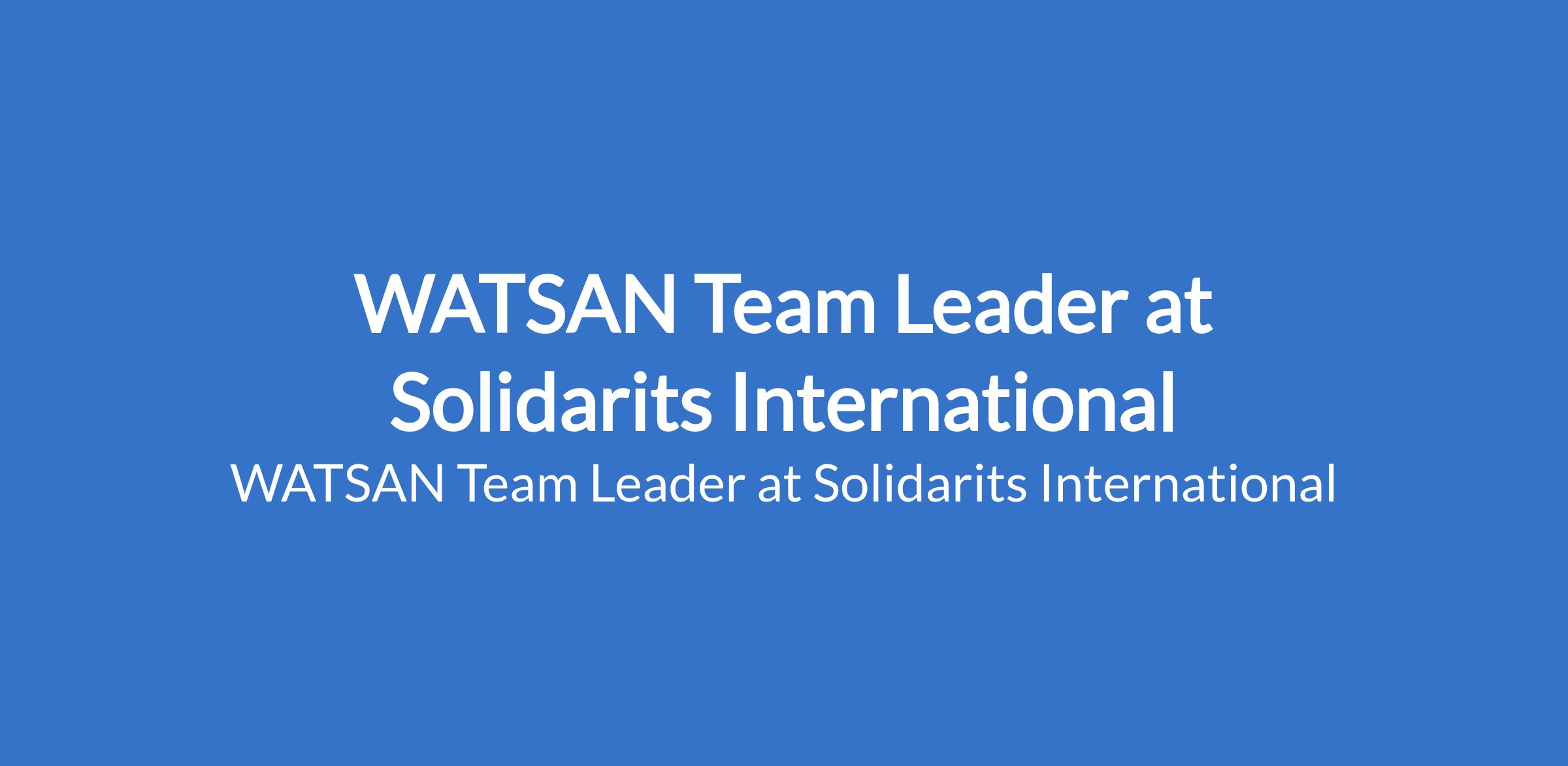 Solidarits International is recruiting to fill the position of: WATSAN Team Leader. The position is located in Anka, Zamfara State. Interested candidates should possess a B.Sc. / HND in Civil Engineering, Water or Sanitation Engineering, hydrogeology or related fields with 2 - 10 years relevant work experience in similar role and deep borehole drilling and development.