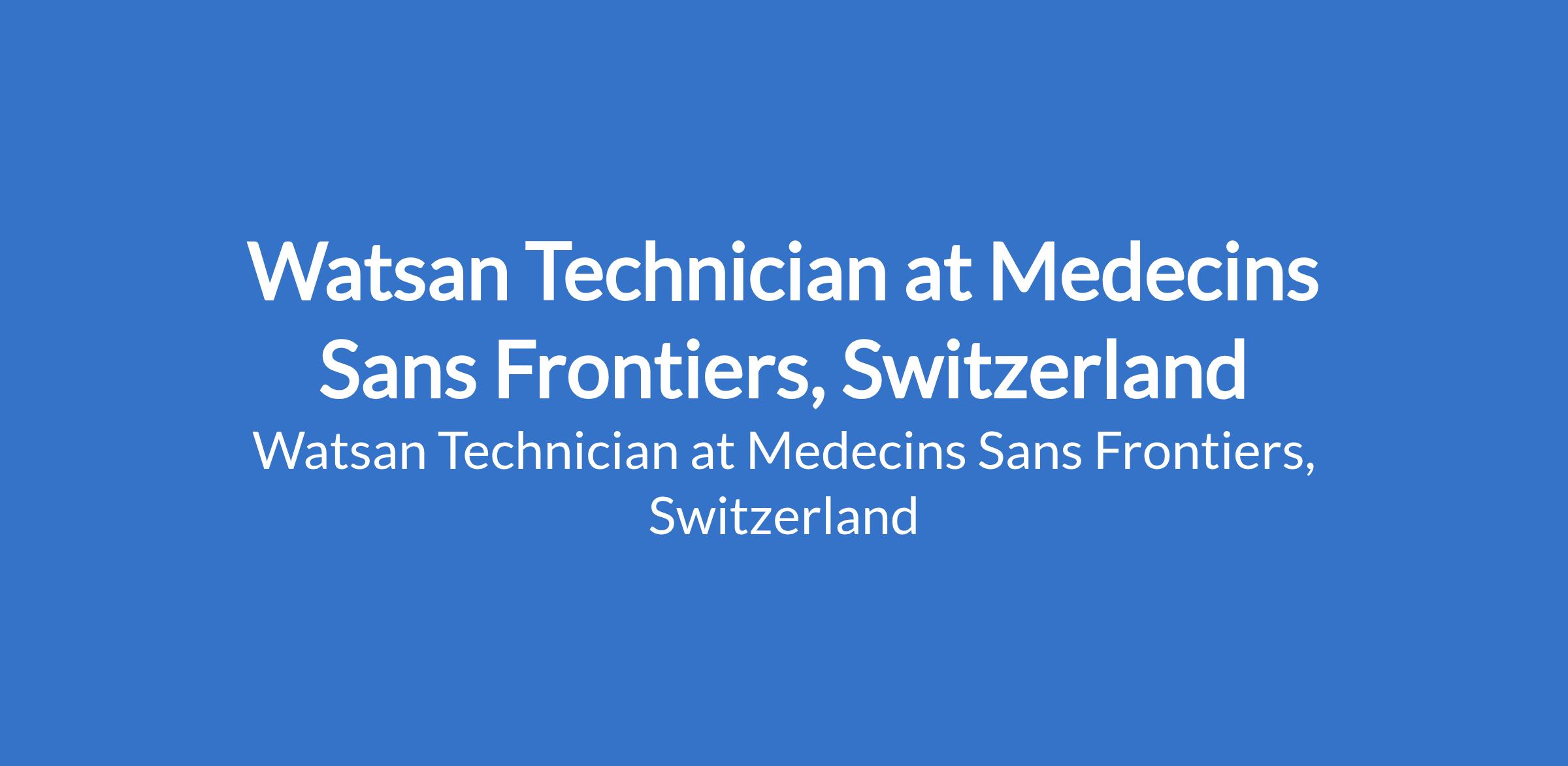 Medecins Sans Frontiers, Switzerland is recruiting to fill the position of: Watsan Technician. The position is located in Ganjuwa, Bauchi State. Interested candidates should possess a Diploma or technical certification in water and sanitation or related studies, is essential with previous experience in technical works, borehole maintenance, batch chlorination, community activities and plumbing is required.