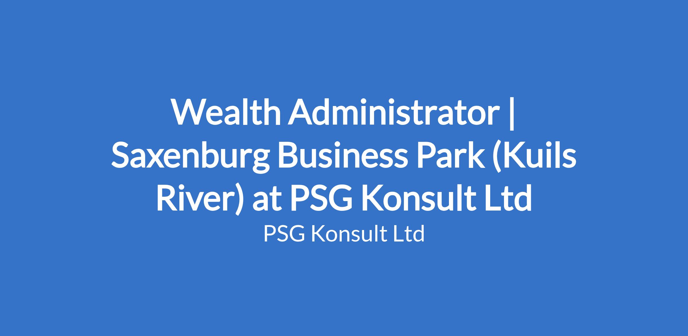 Wealth Administrator | Saxenburg Business Park (Kuils River) at PSG Konsult Ltd