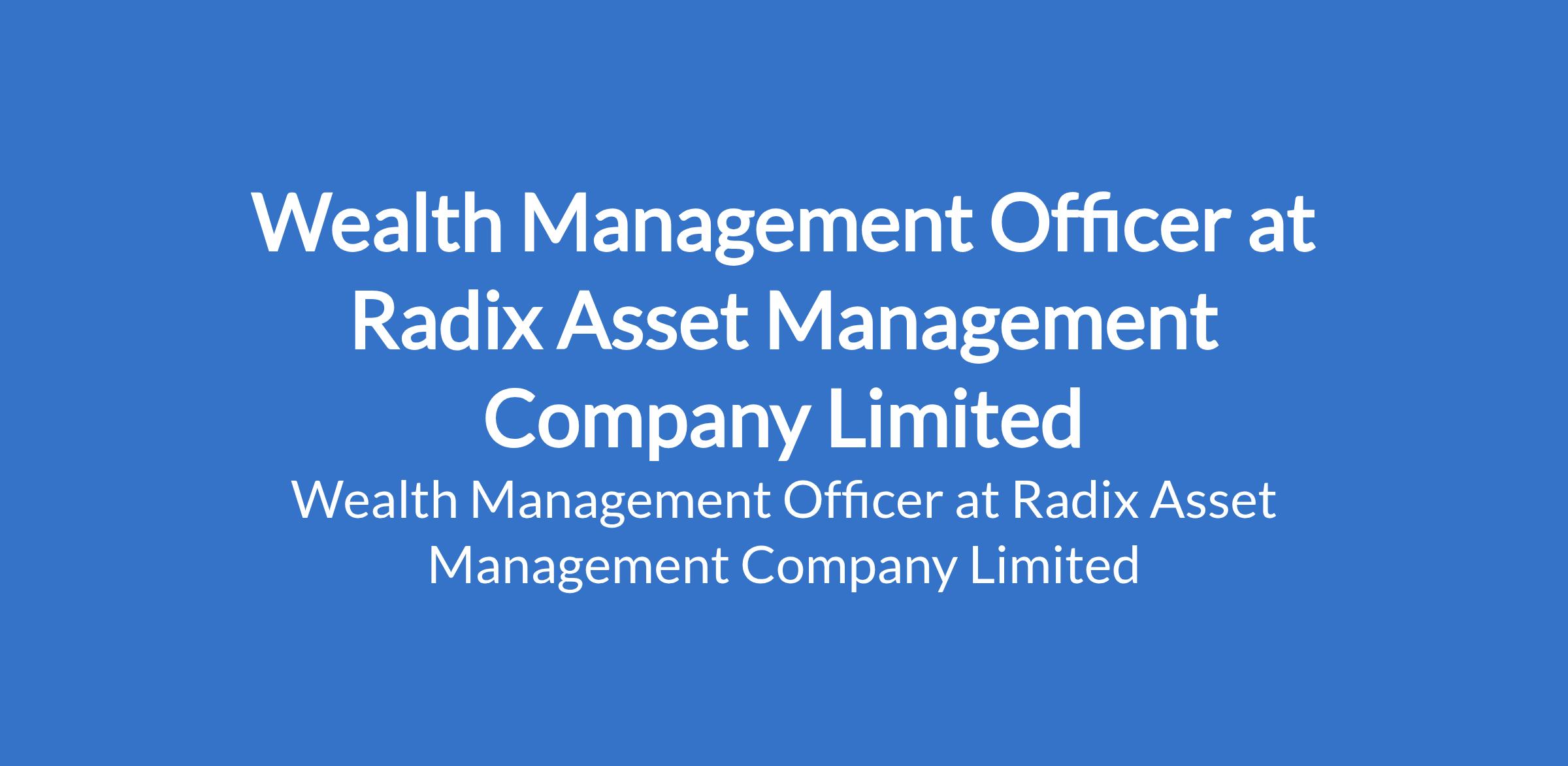 Radix Asset Management Company Limited is recruiting to fill the position of: Wealth Management Officer. The position is located in Victoria Island, Lagos State. Interested candidates should possess a First Degree in any of the disciplines such as (Economics, Marketing, Banking & Finance and Business Administration); a post graduate Degree will be an added an advantage with a minimum of 3 years banking experience in a Relationship Management role.