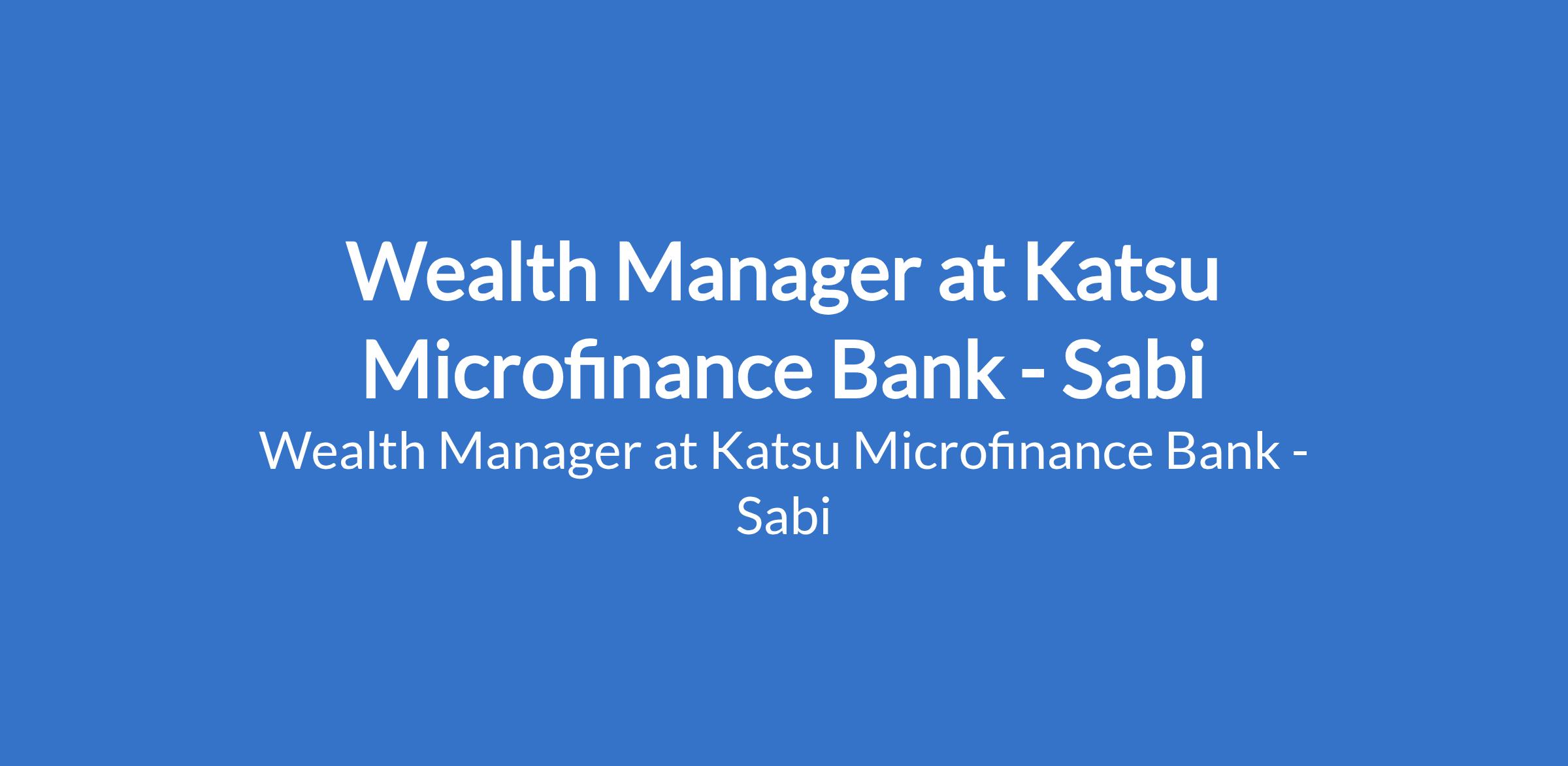 Wealth Manager at Katsu Microfinance Bank - Sabi