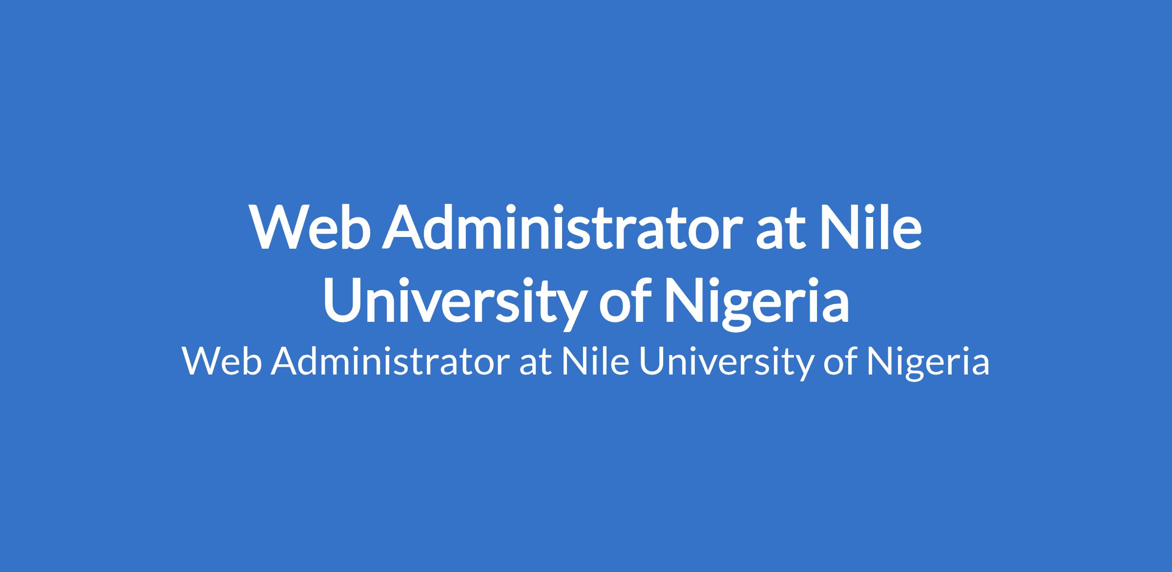 Nile University of Nigeria is recruiting to fill the position of: Web Administrator. The position is located in Abuja (FCT). Interested candidates should possess a Bachelors Degree in computer science, Web Development, or a related field, or equivalent professional experience with a minimum of 2 years experience in website development and management, or related fields.