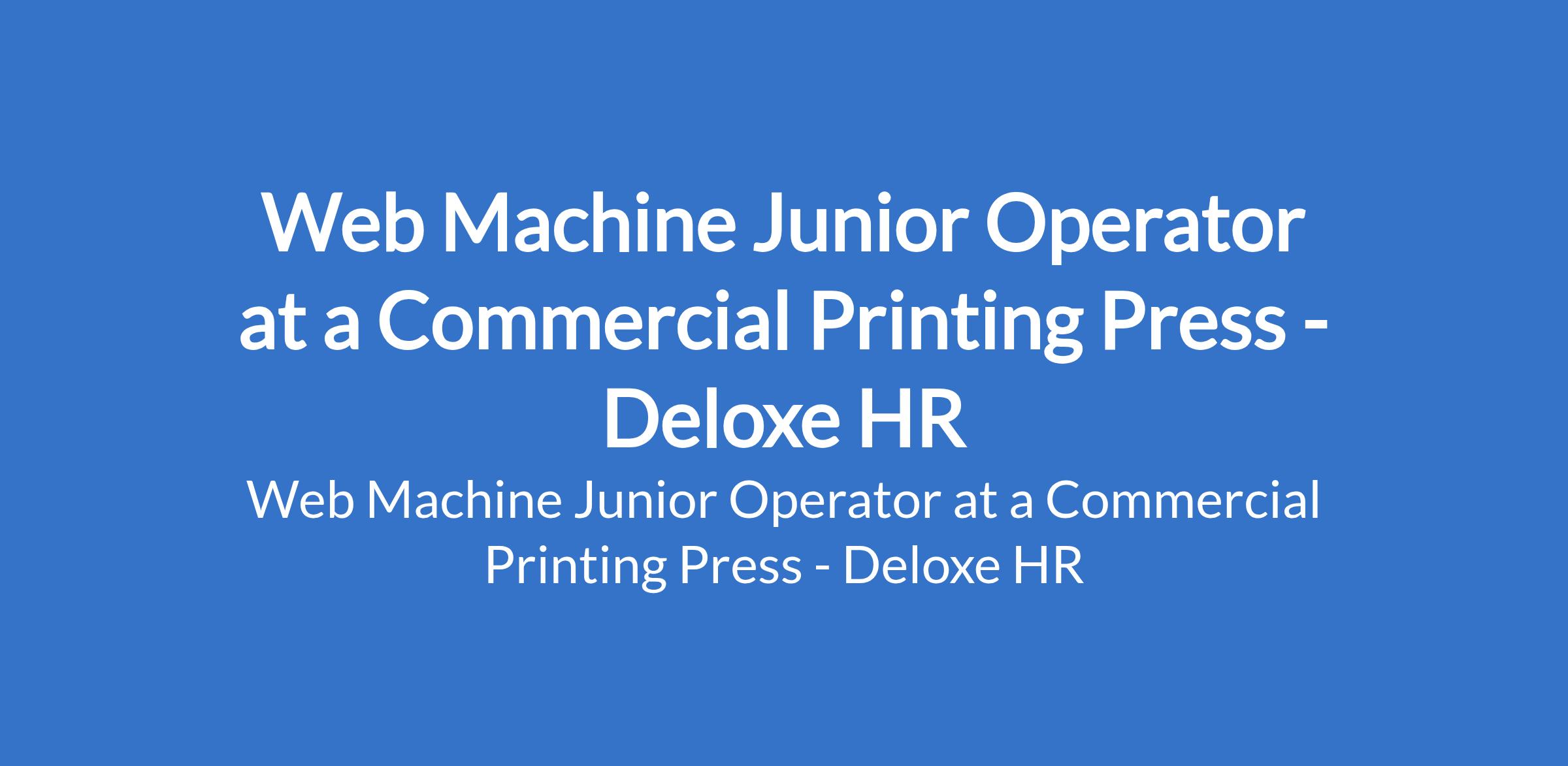 Deloxe HR - Our client, a Commercial Printing Press is recruiting to fill the position of: Web Machine Junior Operator. The position is located in Ikeja, Lagos State. Interested candidates should possess relevant qualifications with at least 2 years experience.