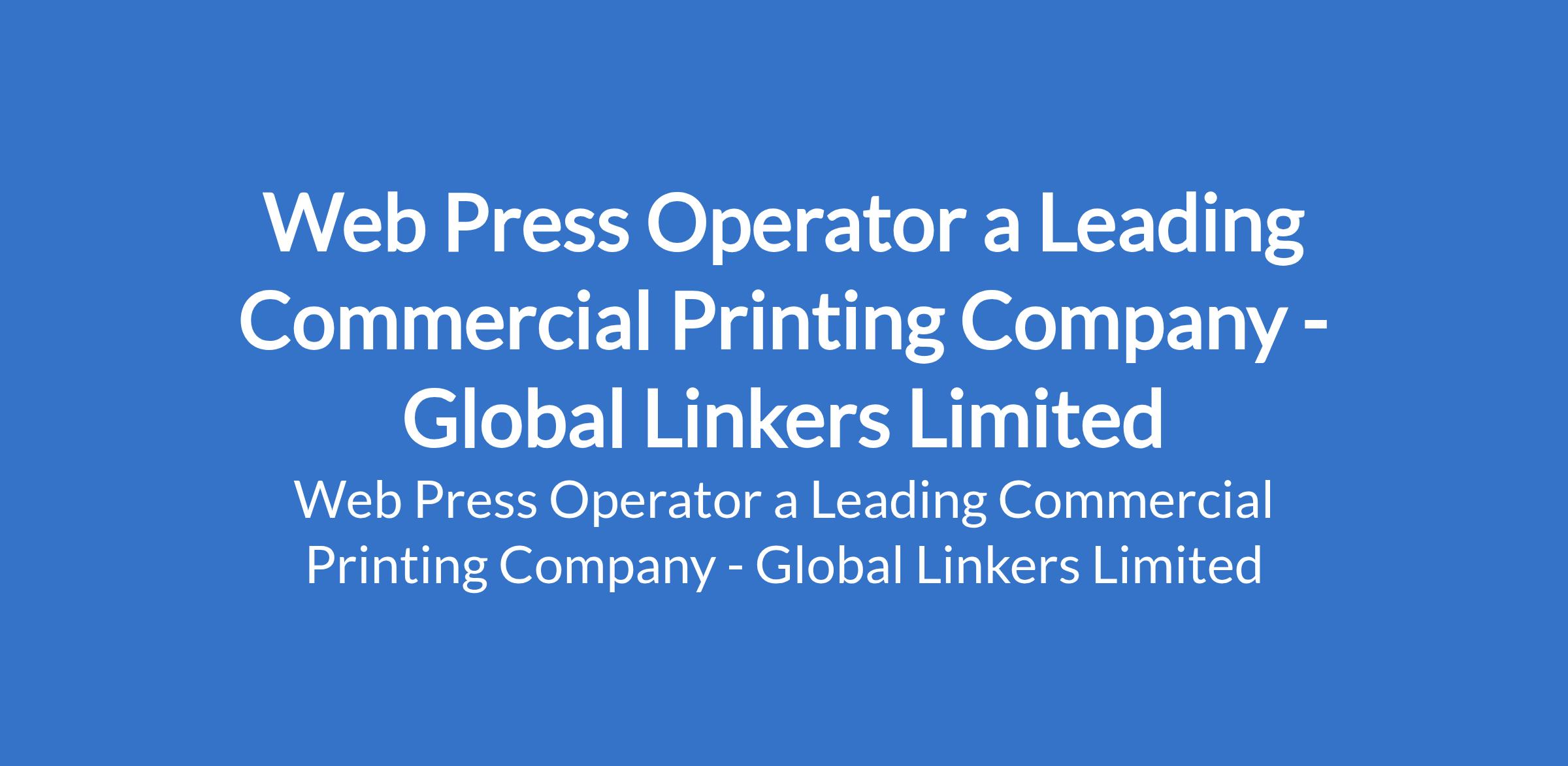 Global Linkers Limited is recruiting to fill the position of: Web Press Operator. The position is located in Ikeja, Lagos State. Interested candidates should possess a minimum of SSCE or Technical / Vocational training in Printing Technology or related field with proven experience with web press machines (City Line, Goss Community, Eco line, etc.