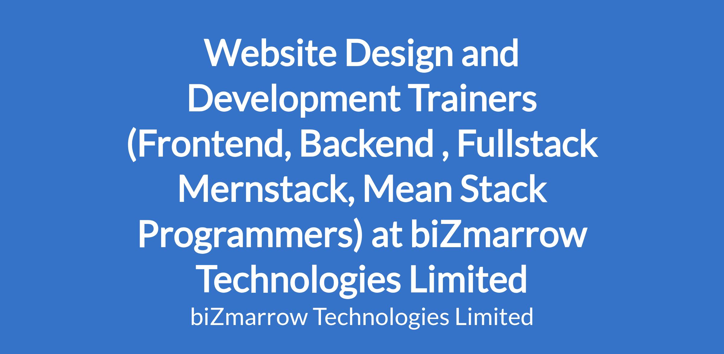 Website Design and Development Trainers (Frontend, Backend , Fullstack Mernstack, Mean Stack Programmers) at biZmarrow Technologies Limited