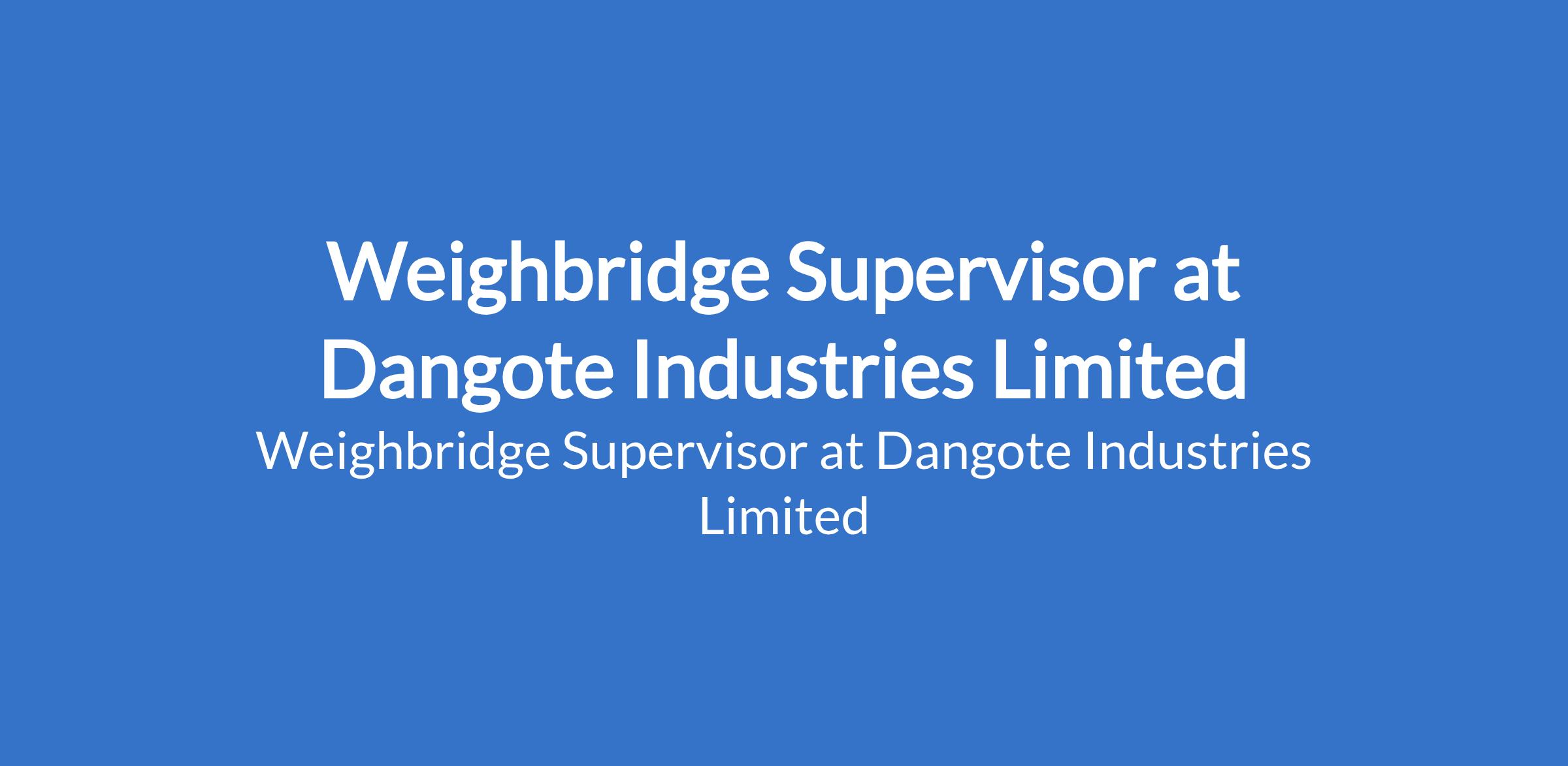 Weighbridge Supervisor at Dangote Industries Limited