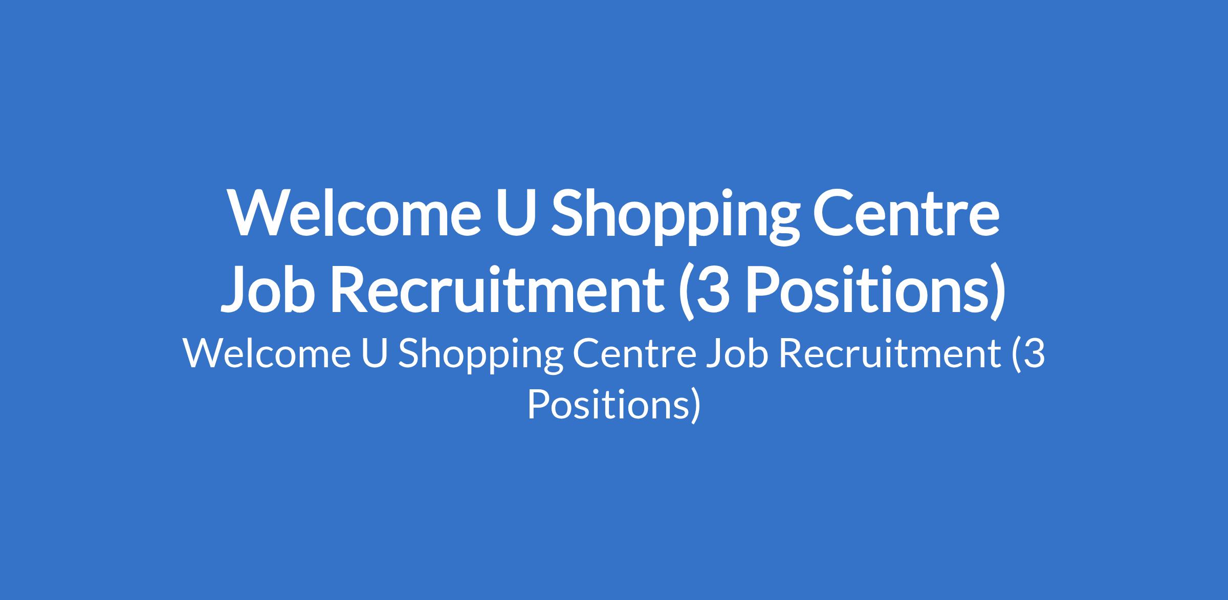 Welcome U Shopping Centre Job Recruitment (3 Positions)