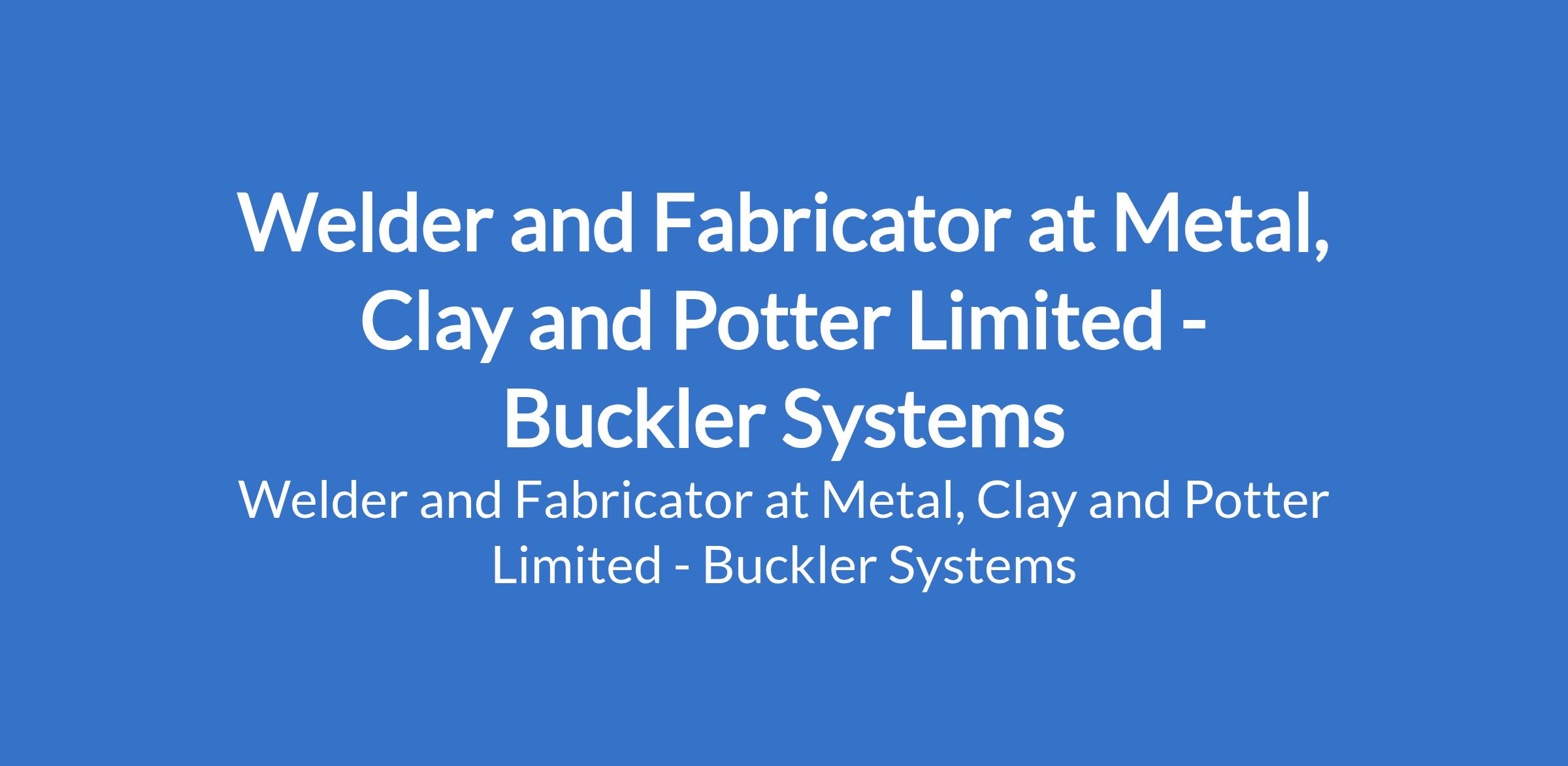 Metal, Clay and Potter Limited, a subsidiary of Buckler Systems is recruiting to fill the position of: Welder and Fabricator. The position is located in Epe, Lagos State. Interested candidates should possess minimum of an SSCE / Trade Test Certificate in Welding, must have prior experience and reside within close proximity to Epe.