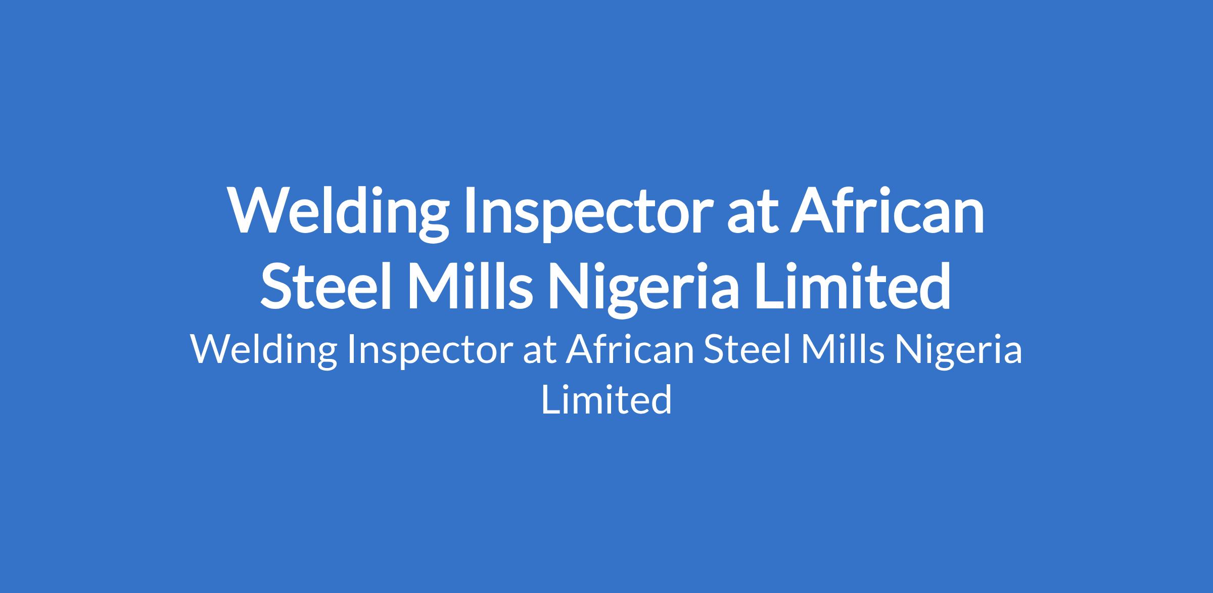African Steel Mills Nigeria Limited is recruiting to fill the position of: Welding Inspector. The position is located in Odogunyan, Lagos State. Interested candidates should possess a Bachelors Degree or Diploma in Mechanical Engineering / Welding / Fabrication Engineering, and an AWS Certified Welding Inspector (CWI) certification, preferably with 8 years experience.