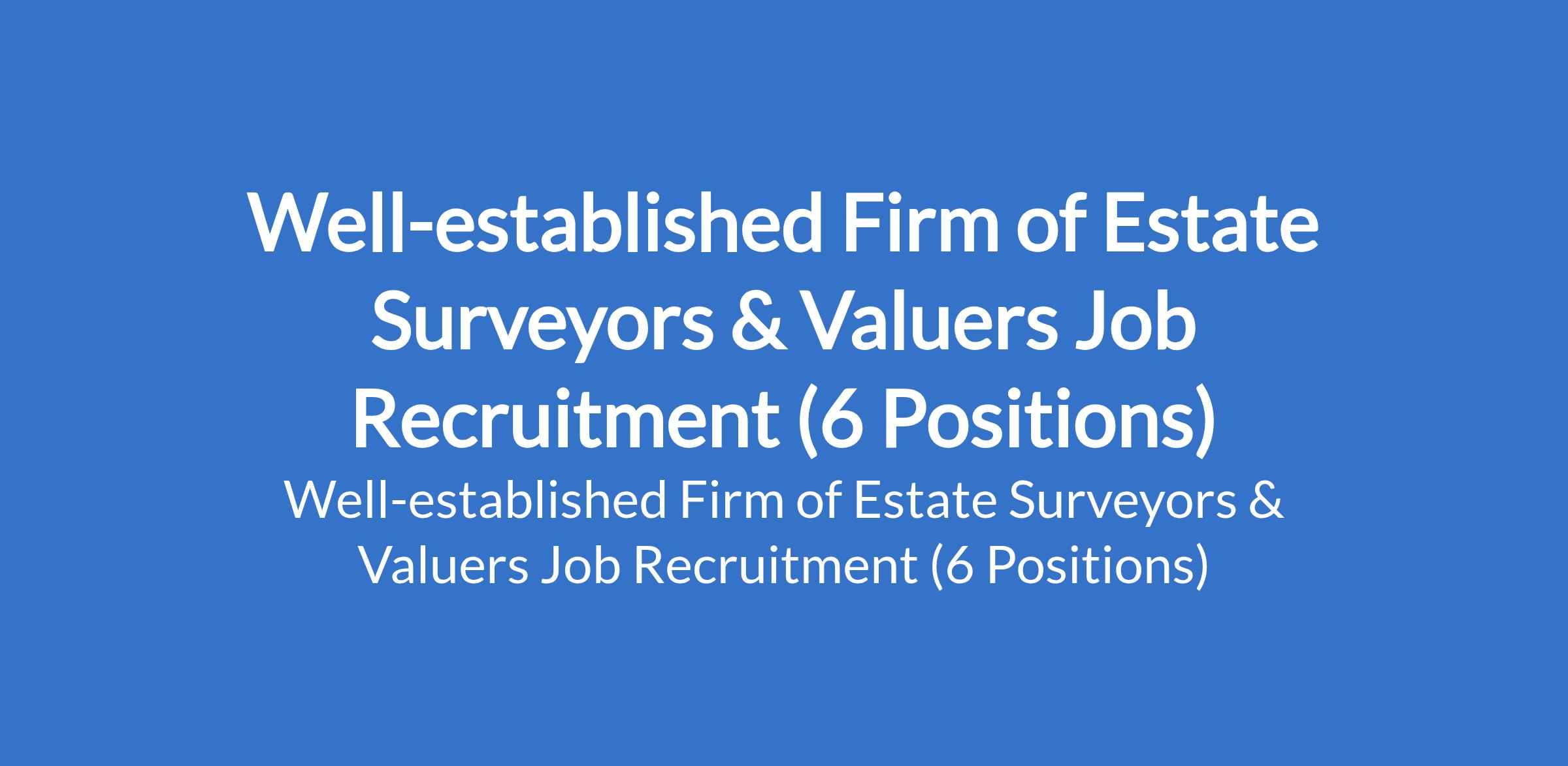 A well-established firm of Estate Surveyors & Valuers is currently recruiting suitably qualified candidates to fill the following positions in Lagos State: Pupil Estate Surveyor; Senior Estate Surveyor (Agency and Management); Senior Estate Surveyor (Specialization in Valuation); Driver; Office Assistant / Clerk; and Confidential Secretary.