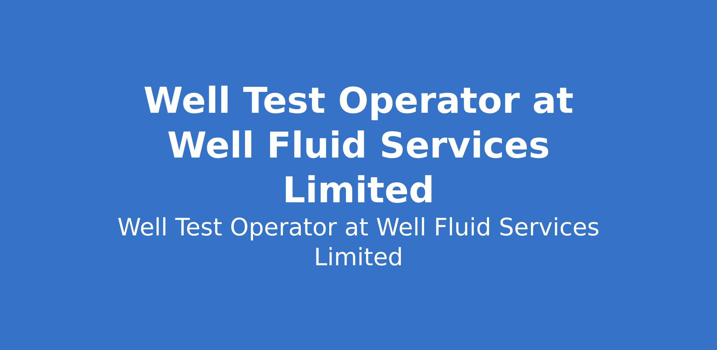 Well Test Operator at Well Fluid Services Limited