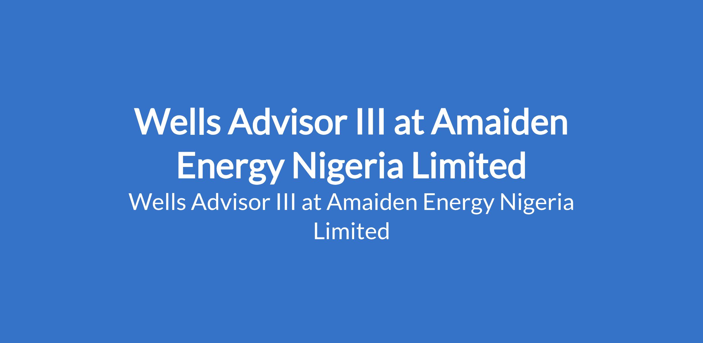 Wells Advisor III at Amaiden Energy Nigeria Limited