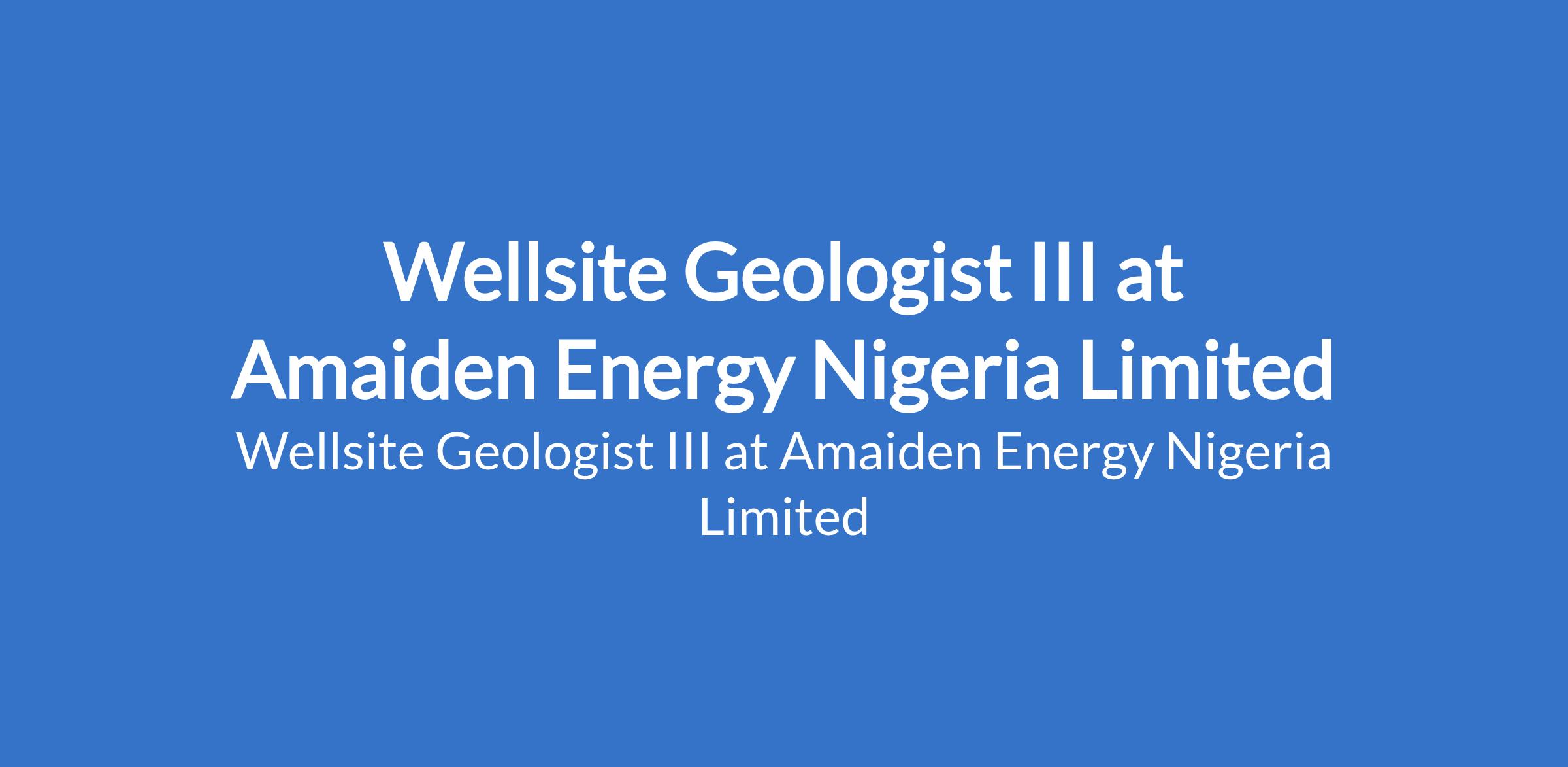 Amaiden Energy Nigeria Limited is recruiting to fill the position of: Wellsite Geologist III. The position is located in Lagos State. Interested candidates should possess a B.Sc / M.Sc in Geology from a recognized institution with experience as a Wellsite Geologist.