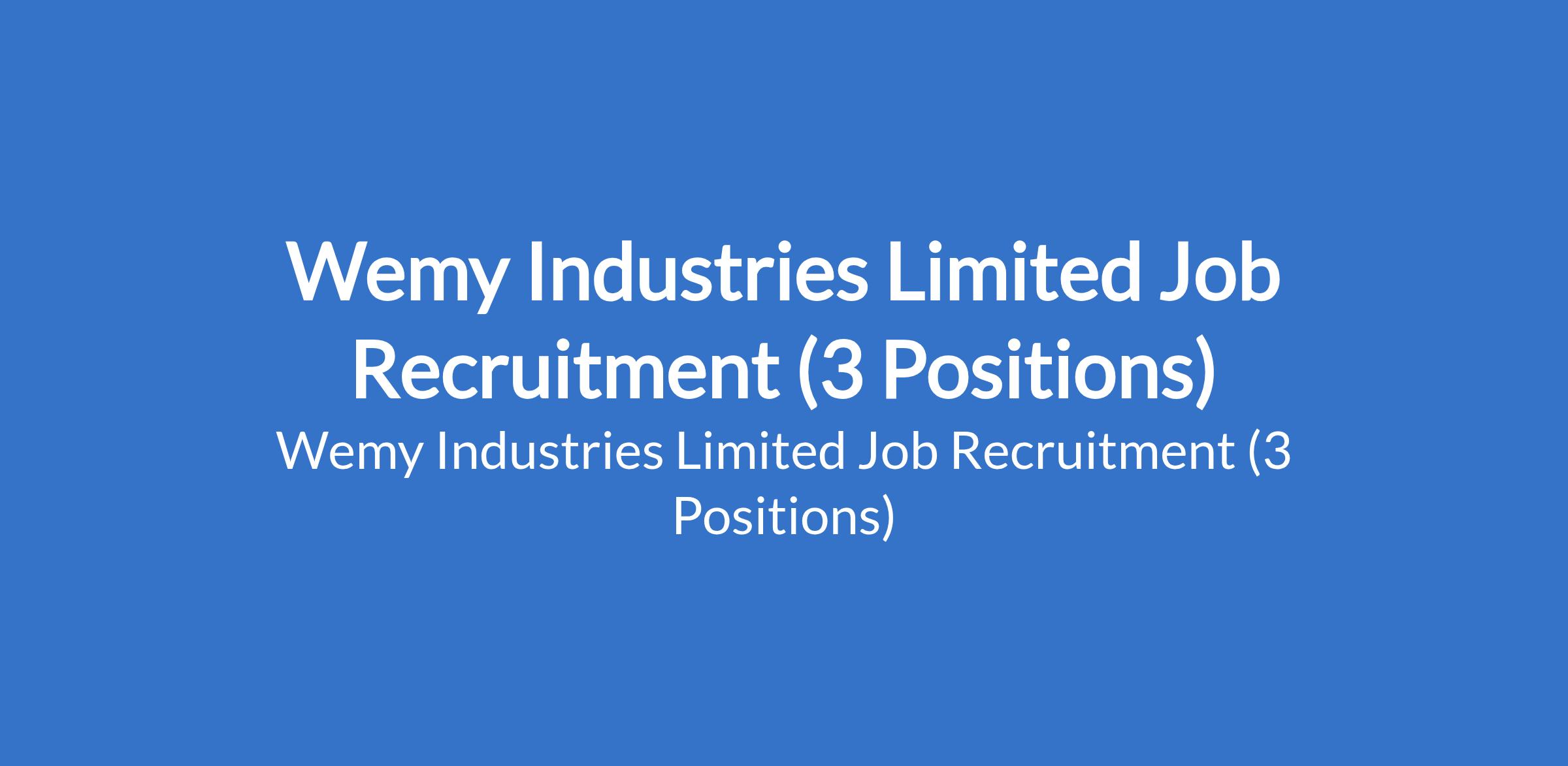 Wemy Industries Limited Job Recruitment (3 Positions)
