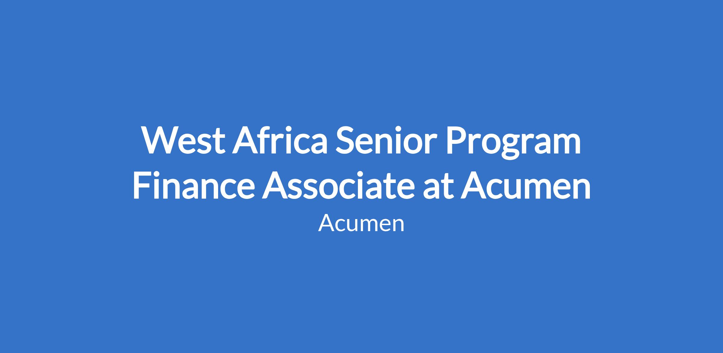 West Africa Senior Program Finance Associate at Acumen