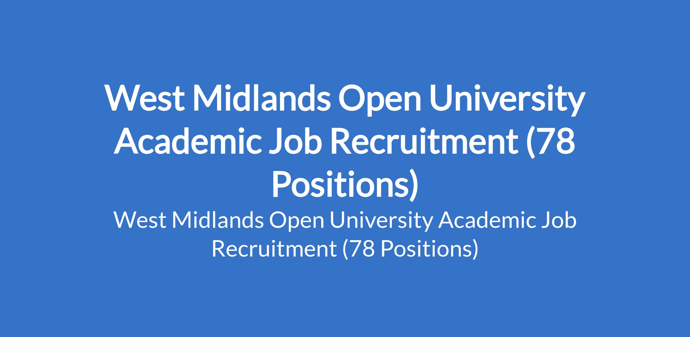 West Midlands Open University Academic Job Recruitment (78 Positions)