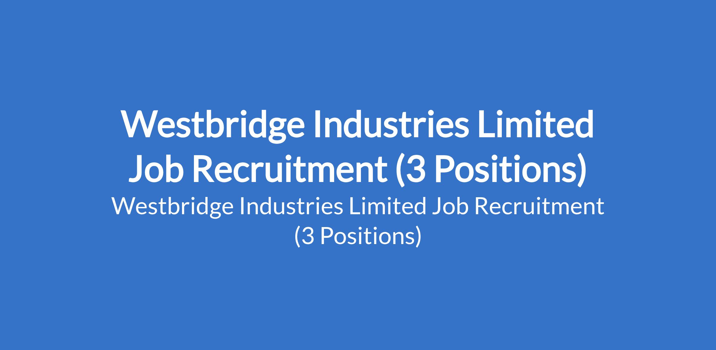 Westbridge Industries Limited Job Recruitment (3 Positions)