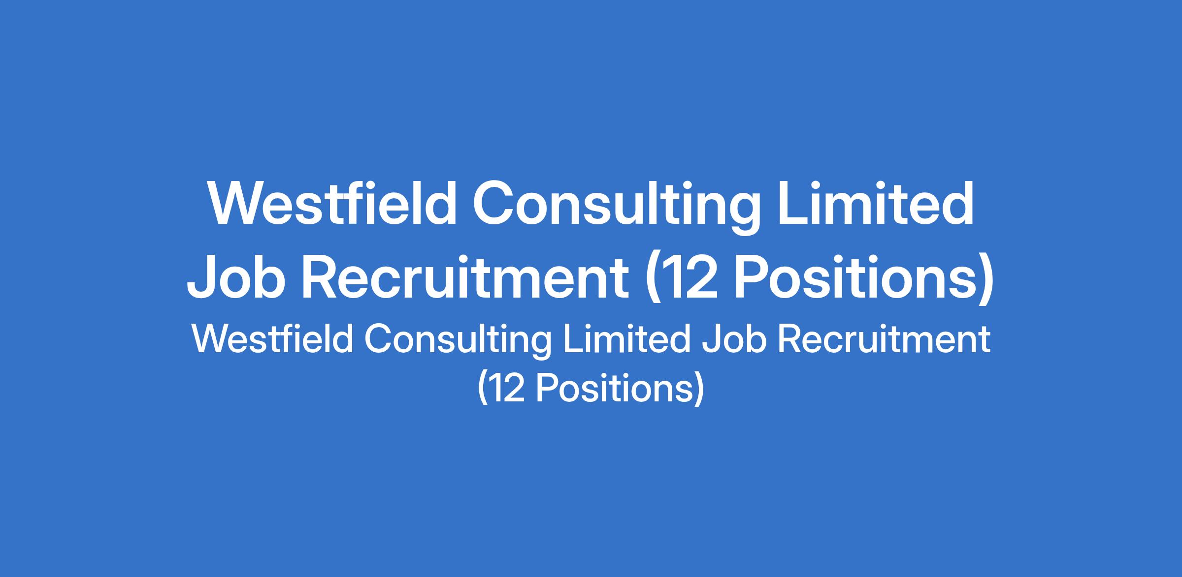 Westfield Consulting Limited is currently recruiting suitably qualified candidates to fill the following positions in Abuja (FCT), Ogun, Lagos and Rivers States: Electrical Engineer, Business Development Officer, Sales Executive, Pool Driver, Credit Officer, Risk Management Officer, Customer Service Officer, Recruitment Officer, Accountant, Front Desk Officer, and Marketing Officer.