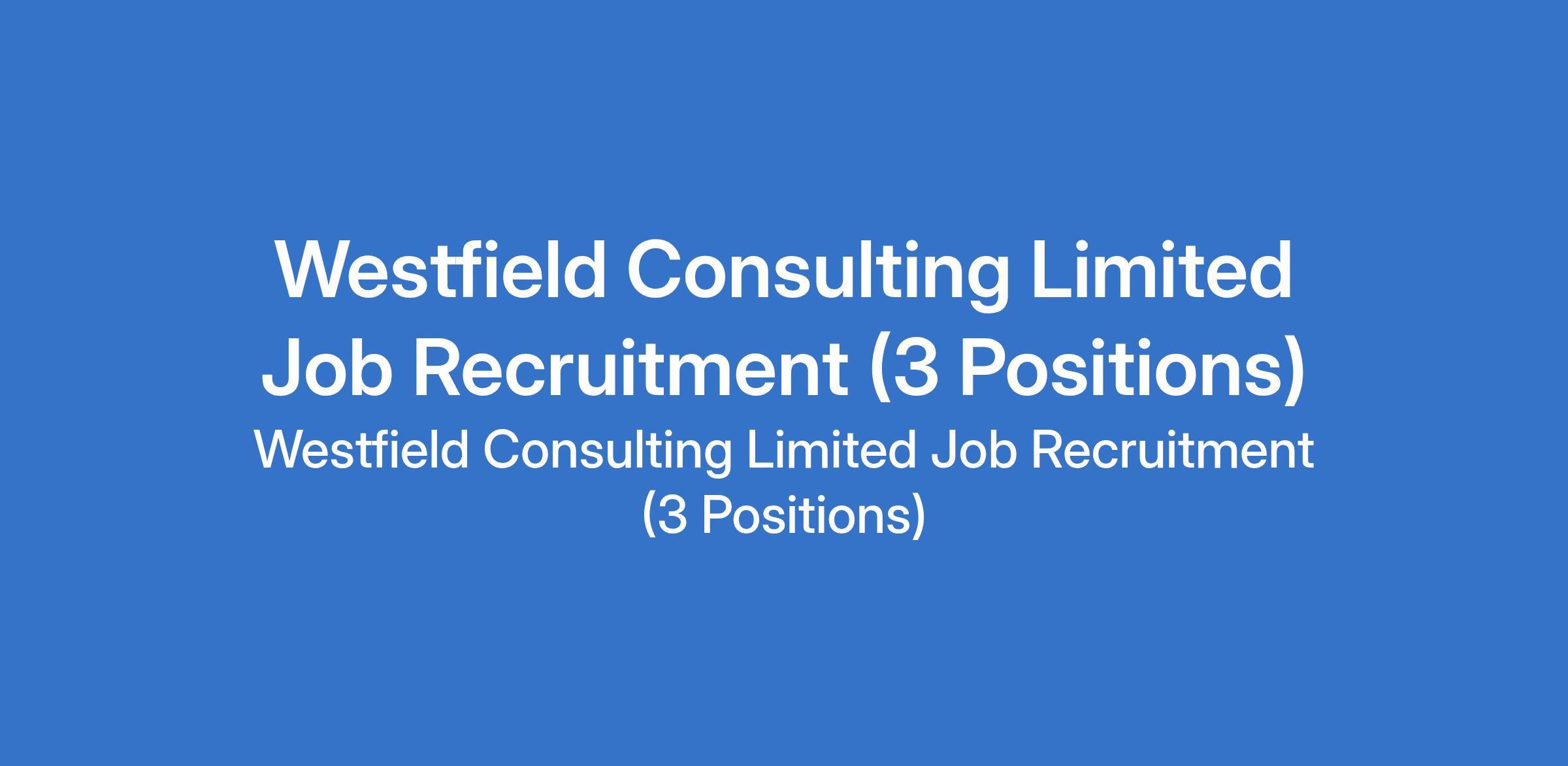 Westfield Consulting Limited Job Recruitment (3 Positions)