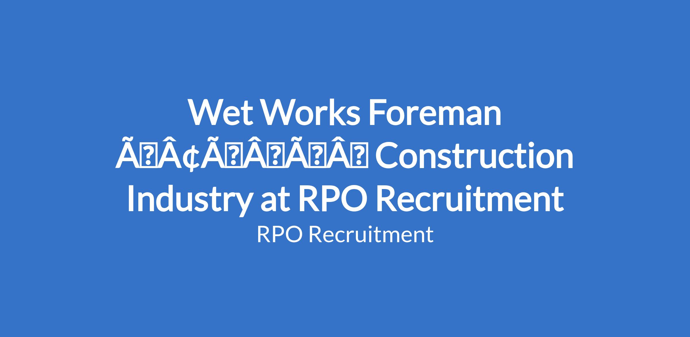 Wet Works Foreman âÃÂàConstruction Industry at RPO Recruitment