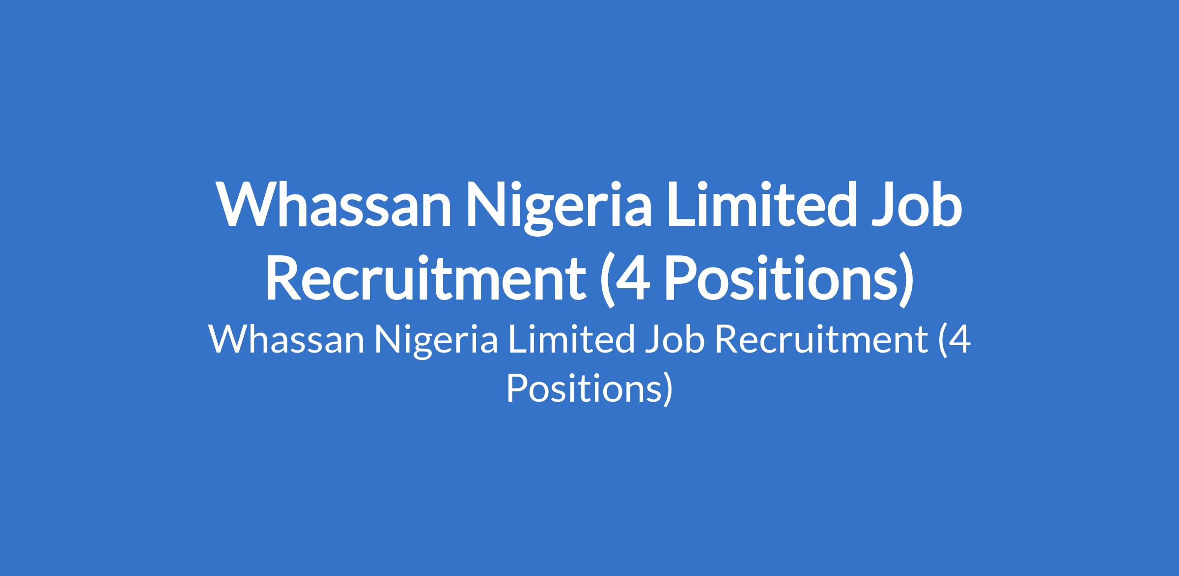 Whassan Nigeria Limited Job Recruitment (4 Positions)