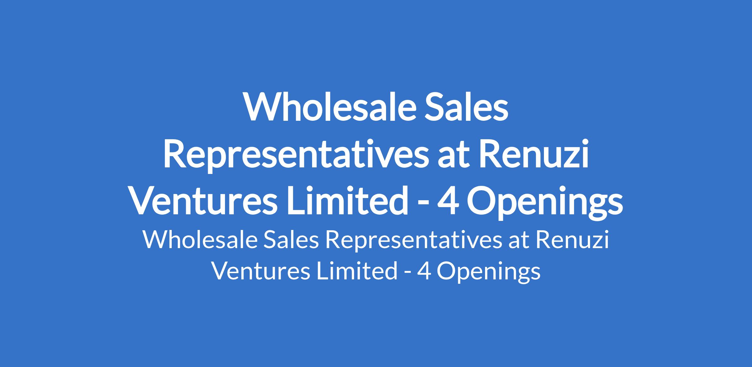 Renuzi Ventures Limited is recruiting to fill the position of: Wholesale Sales Representative. The position is located in Lekki, Ikorodu, Ketu, & Ojota - Lagos State. Interested candidates should possess a B.Sc / OND / HND in relevant fields with a minimum of 2 years experience in FMCG wholesale or bulk sales.