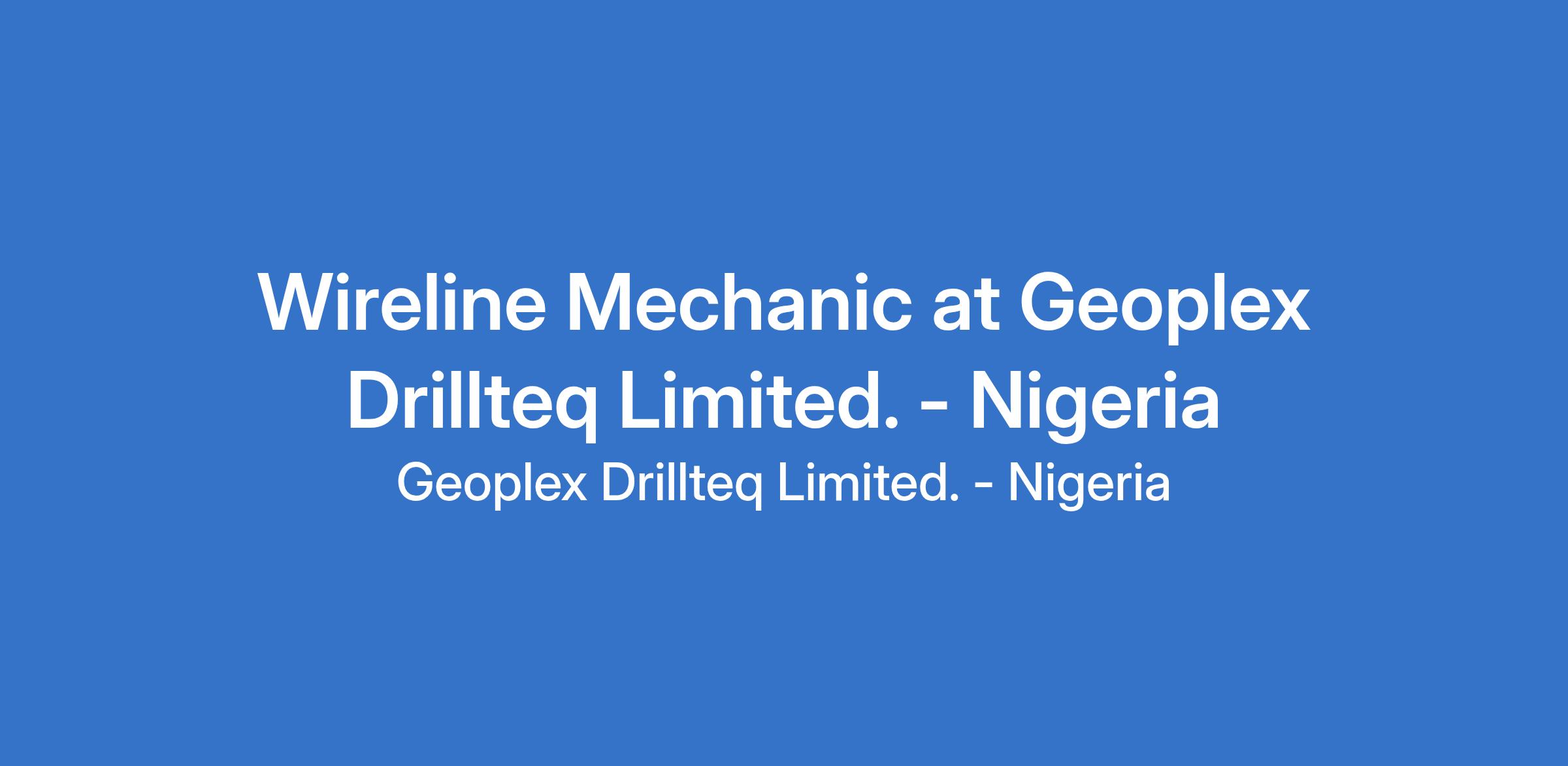 Wireline Mechanic at Geoplex Drillteq Limited. - Nigeria