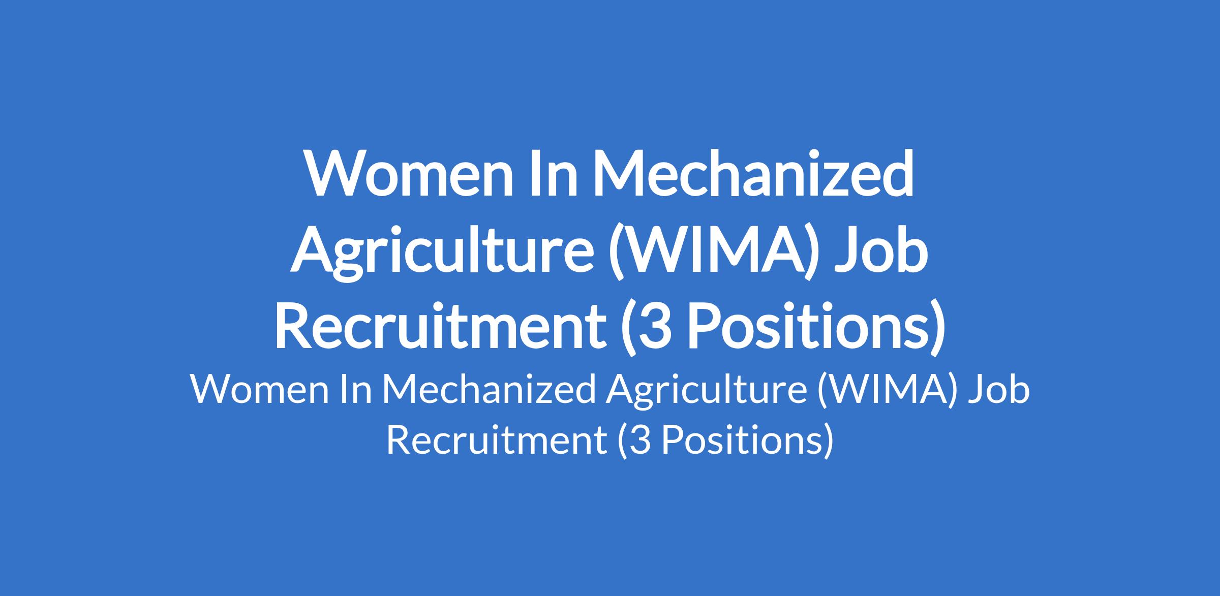 Women In Mechanized Agriculture (WIMA) Job Recruitment (3 Positions)