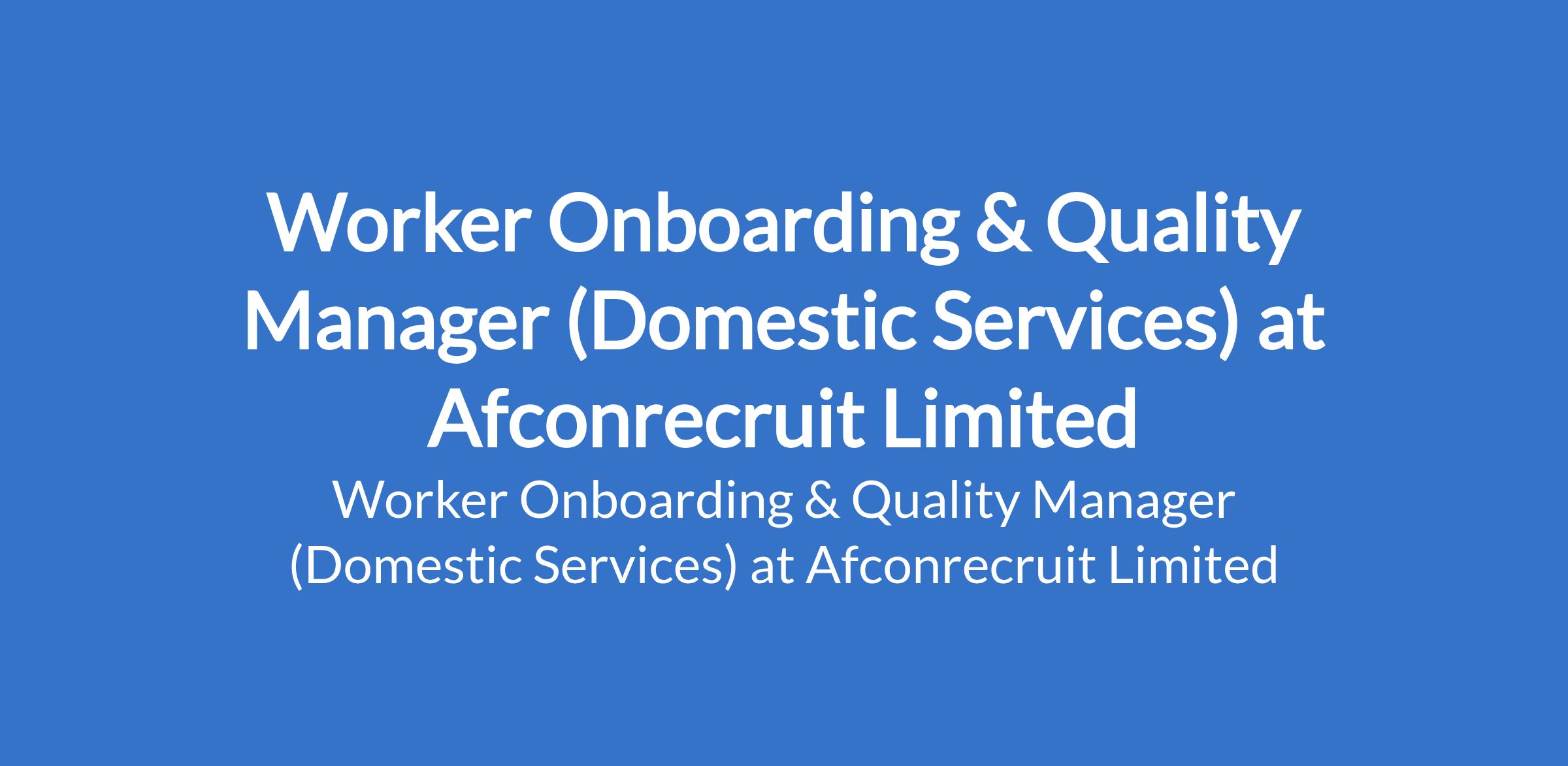 Afconrecruit Limited - Our client is recruiting to fill the position of: Worker Onboarding & Quality Manager (Domestic Services). The position is located in Lagos State. Interested candidates should possess relevant qualifications with 25 years experience.