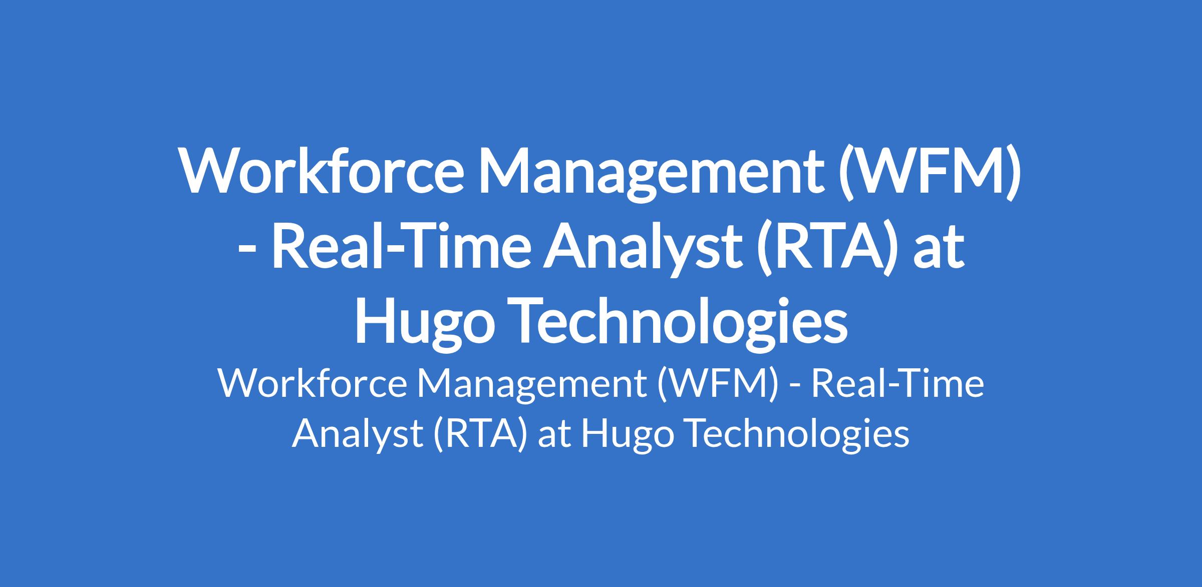 Hugo Technologies is recruiting to fill the position of: Workforce Management (WFM) - Real-Time Analyst (RTA). The position is located in Lagos State. Interested candidates should possess relevant qualifications with 2 - 4 years of experience in WFM, operations, or contact center environments.