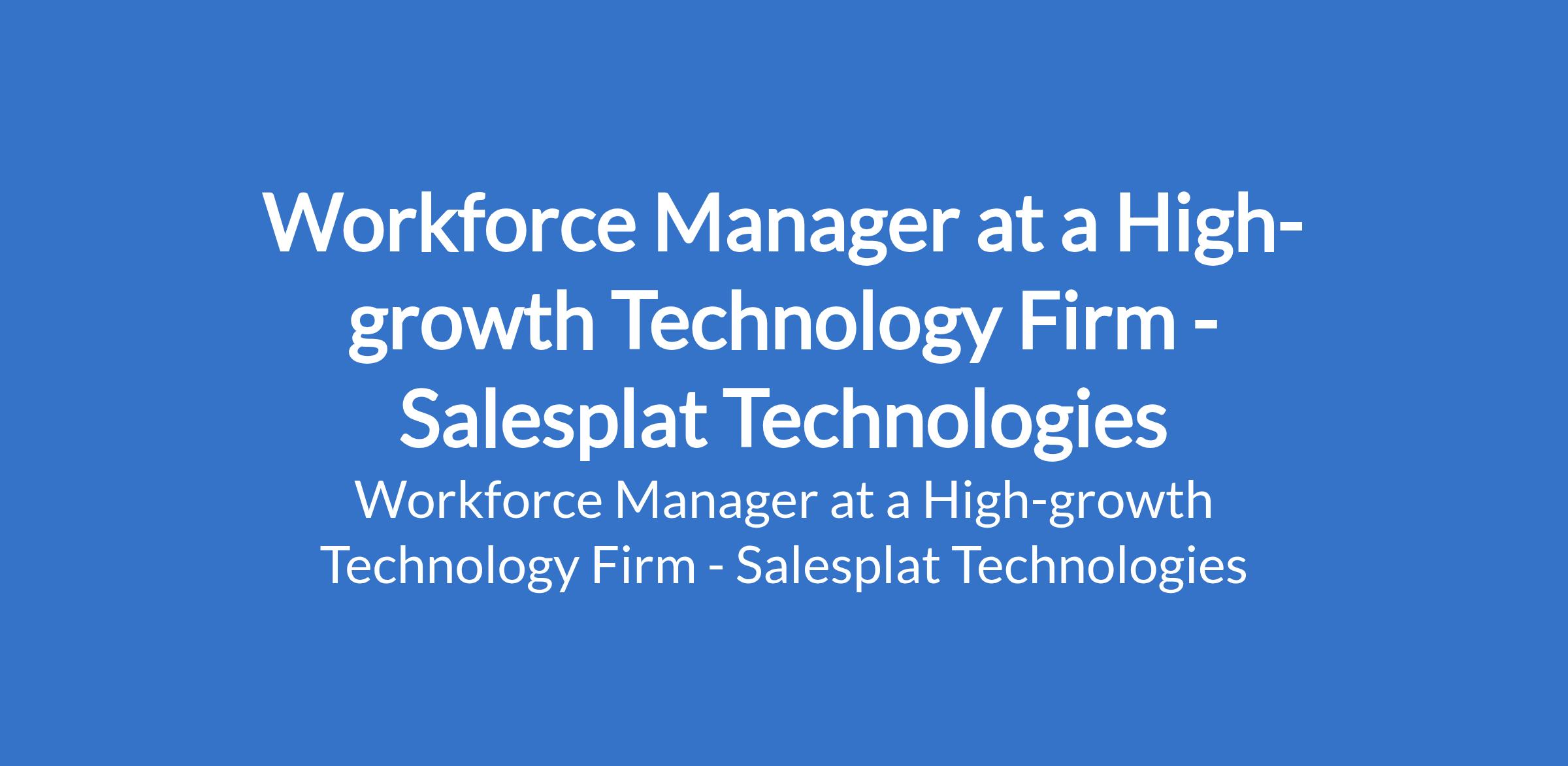 Salesplat Technologies - Our client, a high-growth technology firm is recruiting to fill the position of: Workforce Manager. The position is located in Lagos State (Remote). Salary Range: N450,000 Monthly. Interested candidates should have relevant qualifications with 5 7+ years of experience in HR, Community Management, or Workforce Operations.