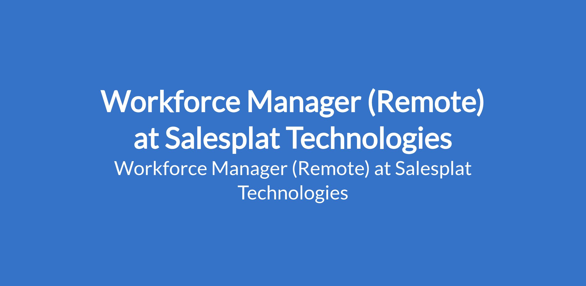 Salesplat Technologies is recruiting to fill the position of: Workforce Manager. The position is located in Lagos State (Remote). Salary: N450,000 per month. . Interested candidates should possess relevant qualification with 57 years of experience in HR, Community Management, or Workforce Operations.