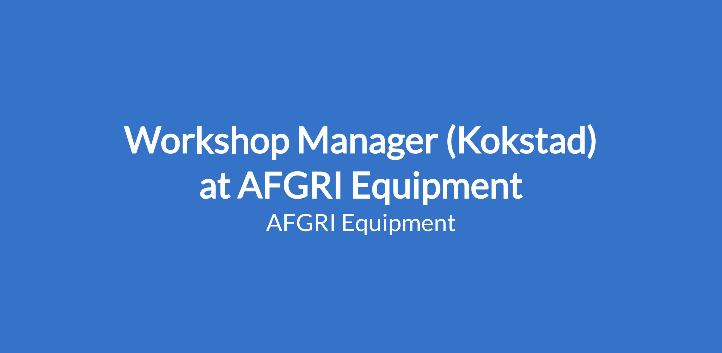 Workshop Manager (Kokstad) at AFGRI Equipment