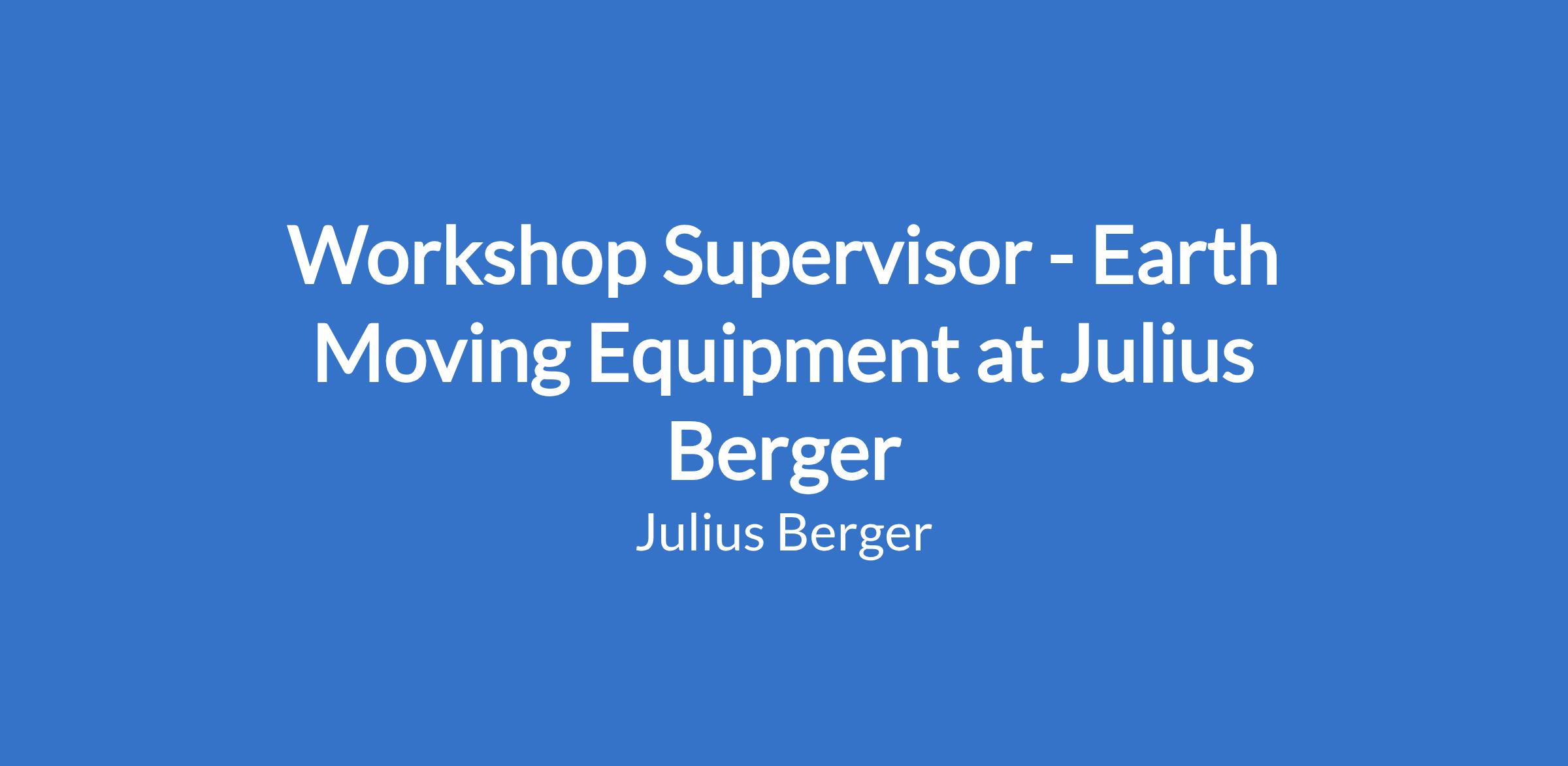 Workshop Supervisor - Earth Moving Equipment at Julius Berger