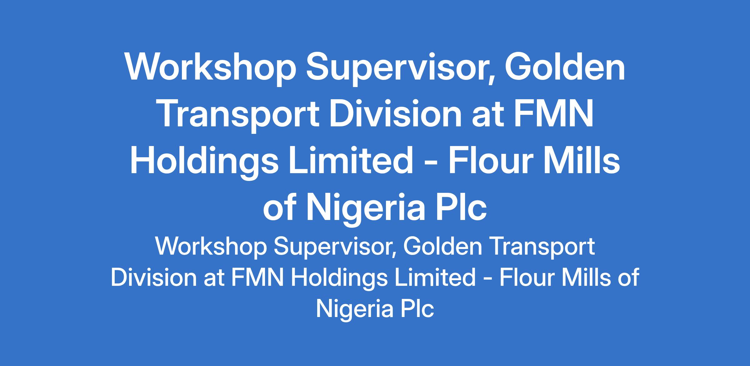 Workshop Supervisor, Golden Transport Division at FMN Holdings Limited - Flour Mills of Nigeria Plc