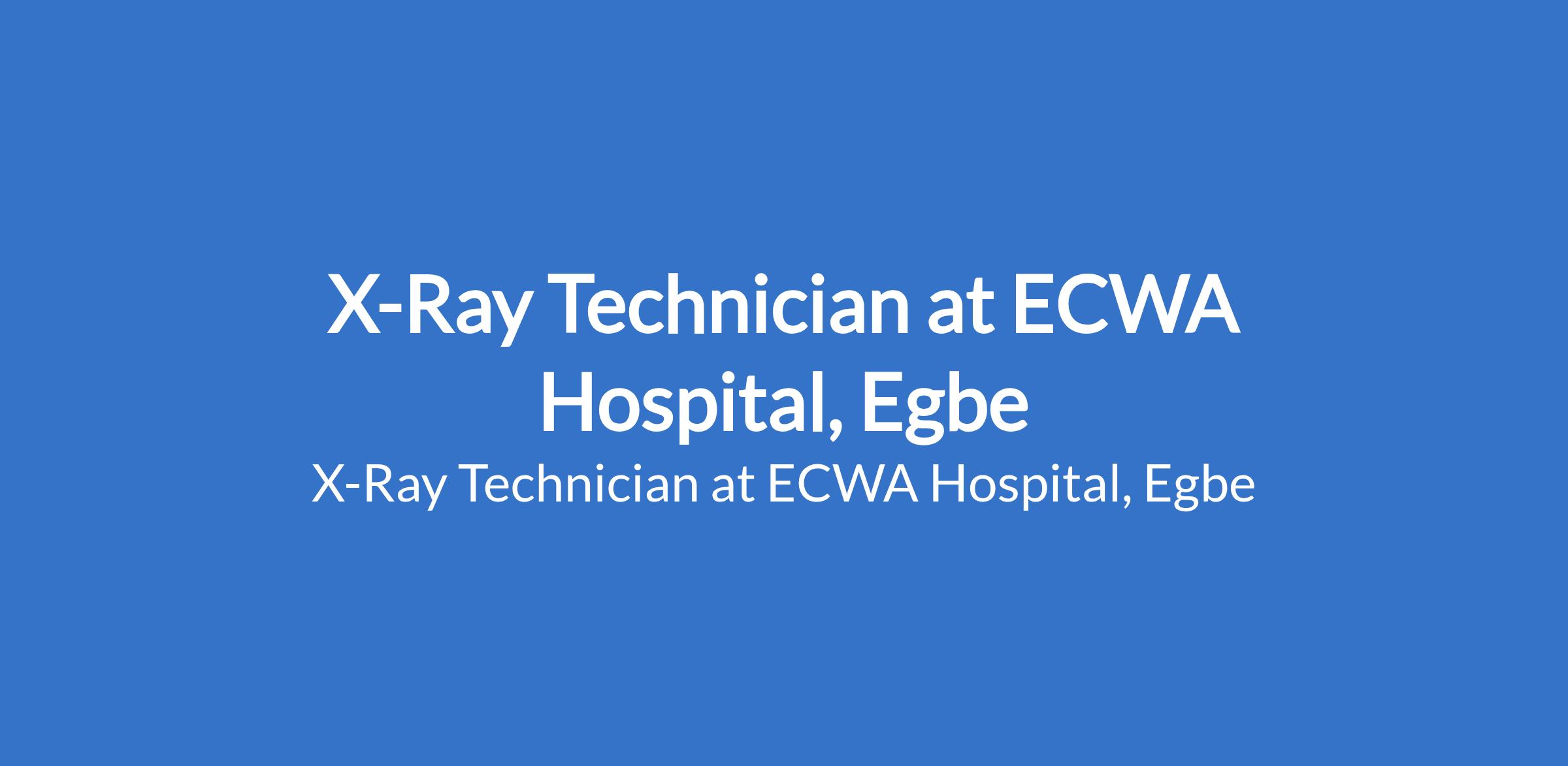 ECWA Hospital, Egbe is recruiting to fill the position of: X-Ray Technician. The position is located in Kogi State. Interested candidates should possess a National Diploma in Radiography with experience working in a similarly sized institution or hospital.
