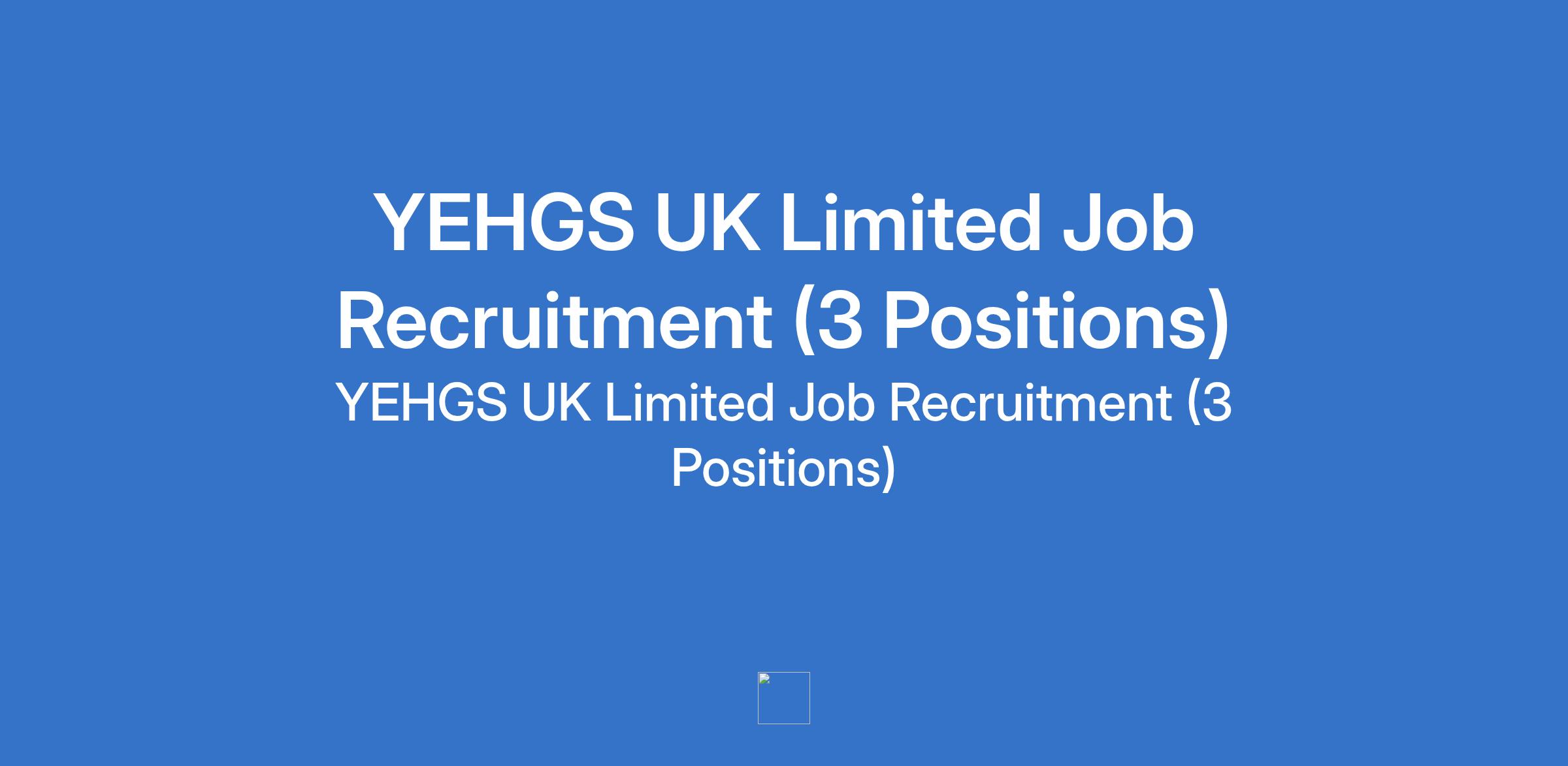 YEHGS UK Limited Job Recruitment (3 Positions)