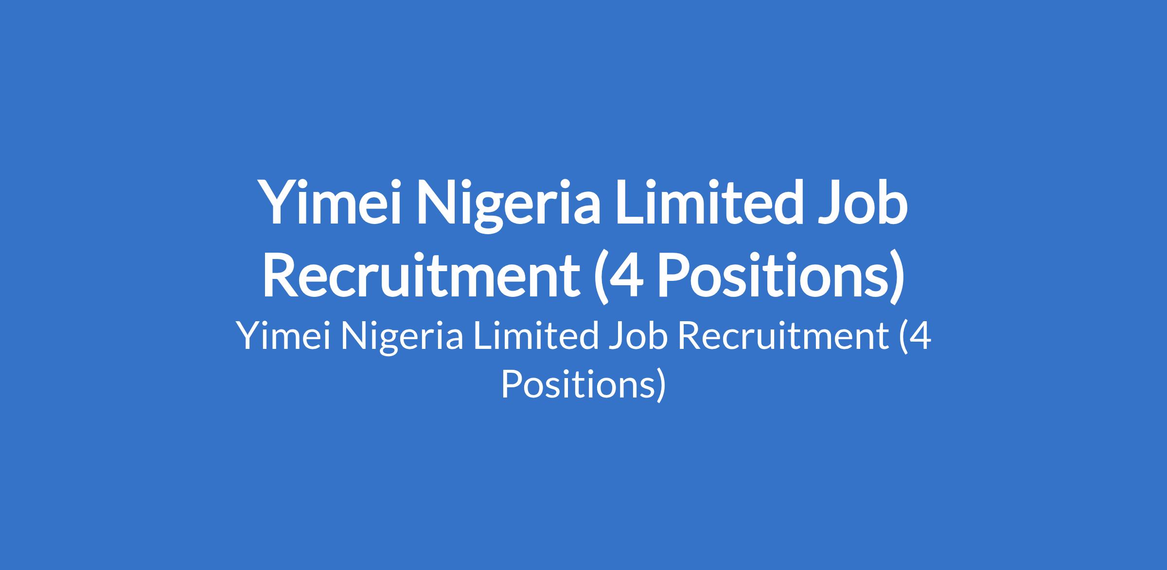 Yimei Nigeria Limited Job Recruitment (4 Positions)