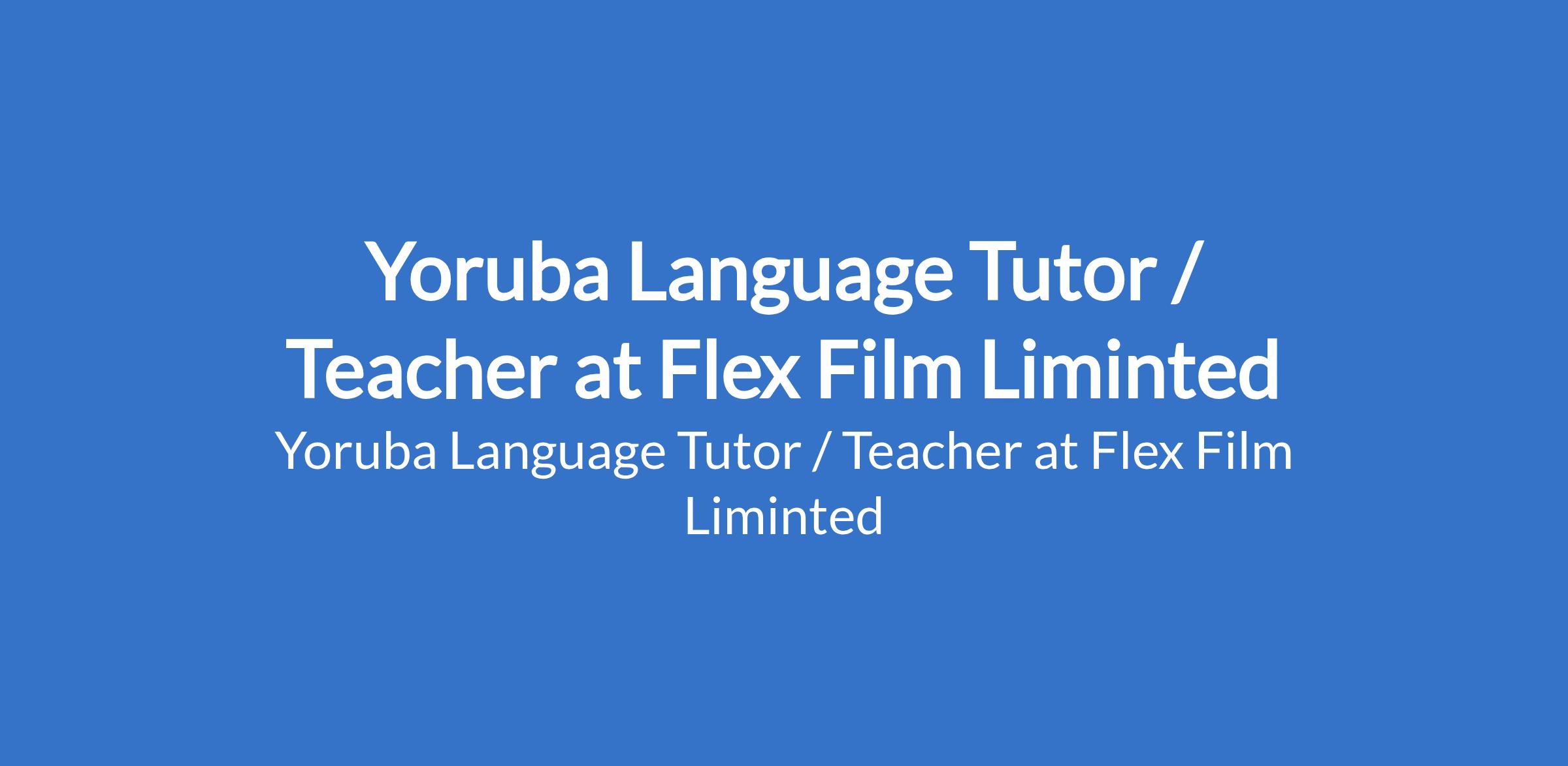 Yoruba Language Tutor / Teacher at Flex Film Liminted