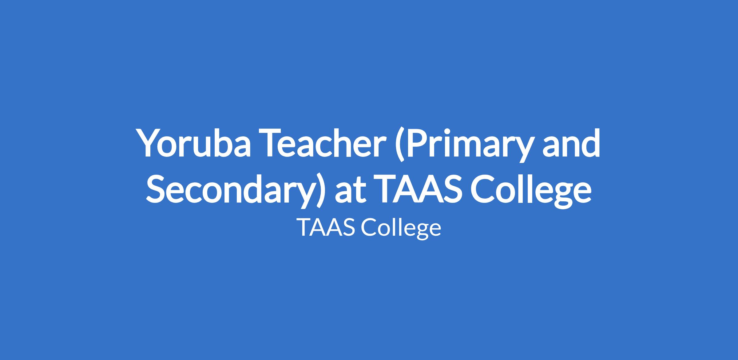 Yoruba Teacher (Primary and Secondary) at TAAS College