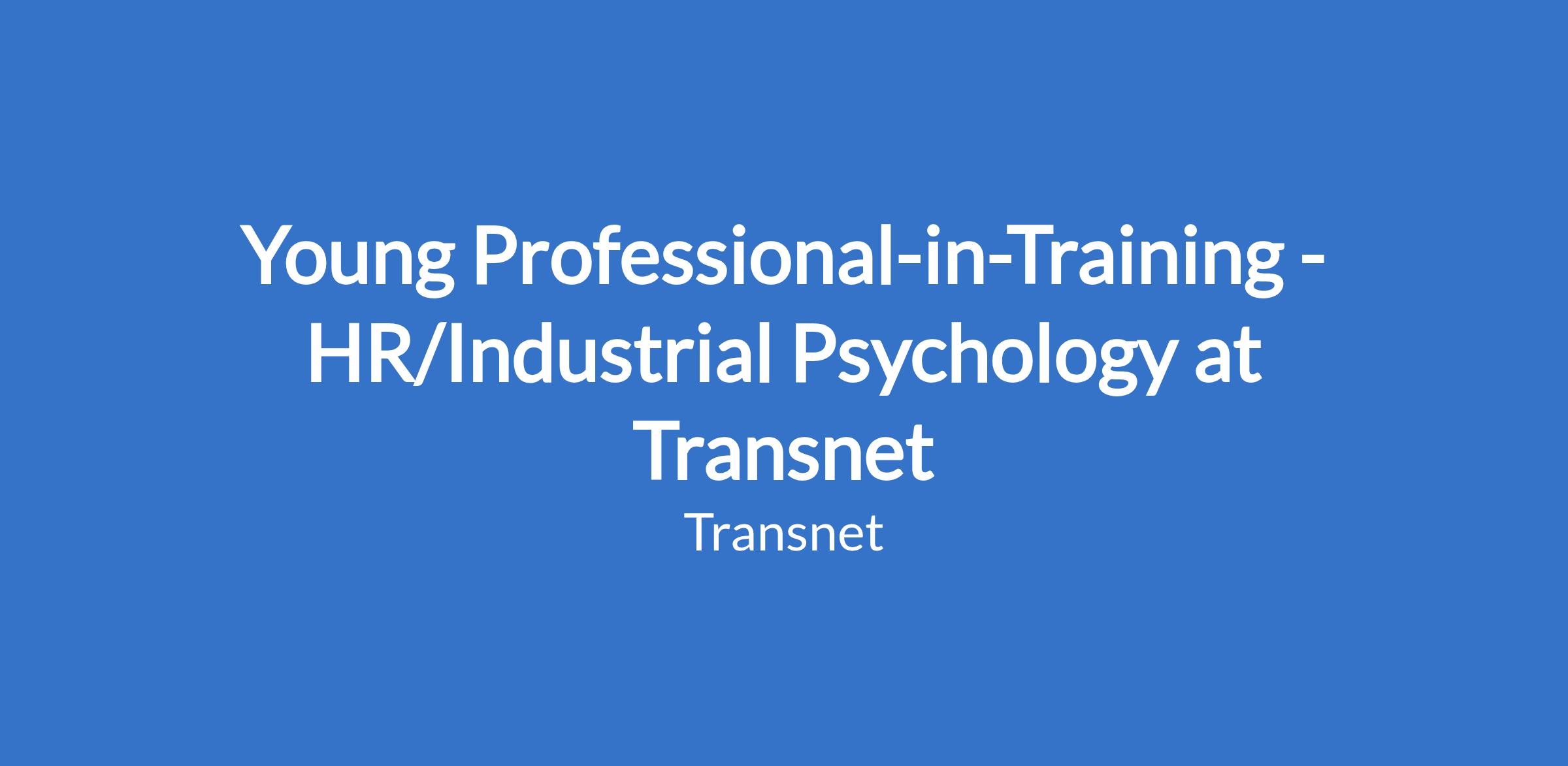 Young Professional-in-Training -HR/Industrial Psychology at Transnet