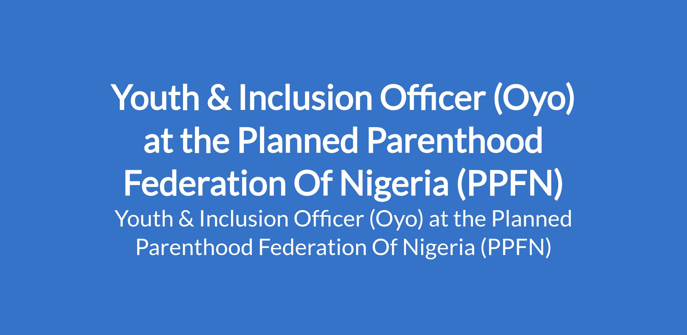 The Planned Parenthood Federation of Nigeria (PPFN) is recruiting to fill the position of: Youth & Inclusion Officer. The position is located in Edo State. Interested candidates should possess a Bachelors Degree in Public Health, Education, Social Sciences, Gender Studies, or a related field with 35 years experience implementing youth-focused or ASRHR / SRHR programmes at community or state level.