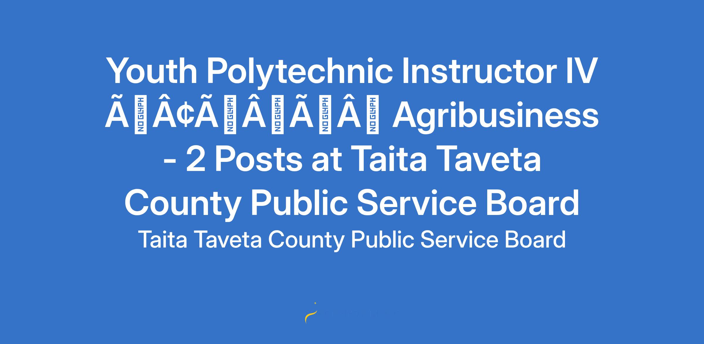 POSITION: YOUTH POLYTECHNIC INSTRUCTOR IV - AGRIBUSINESS JOB GROUP CPSB 12