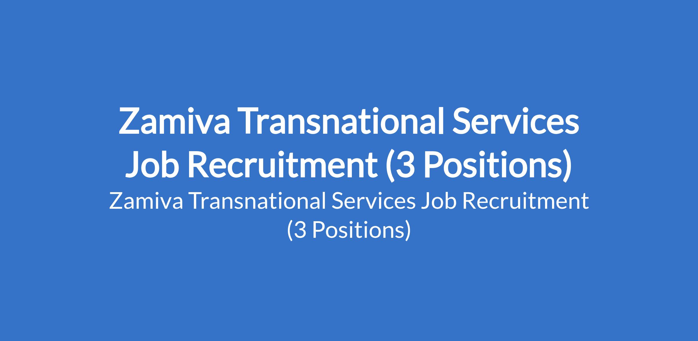 Zamiva Transnational Services Job Recruitment (3 Positions)