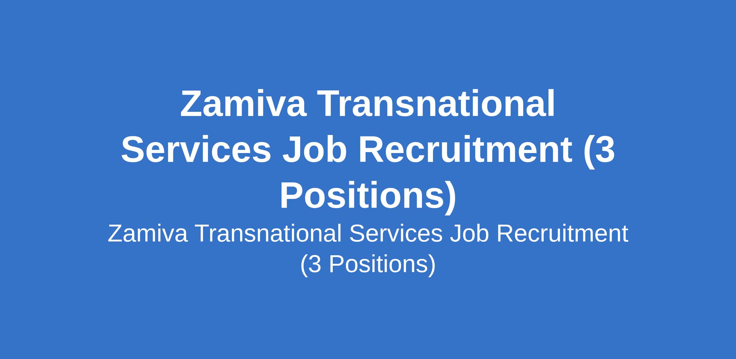 Zamiva Transnational Services Job Recruitment (3 Positions)