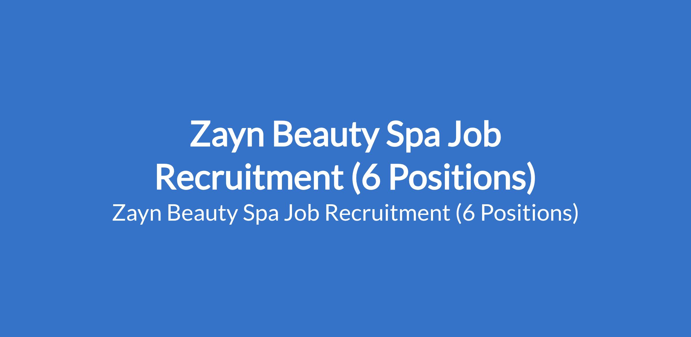 Zayn Beauty Spa Job Recruitment (6 Positions)