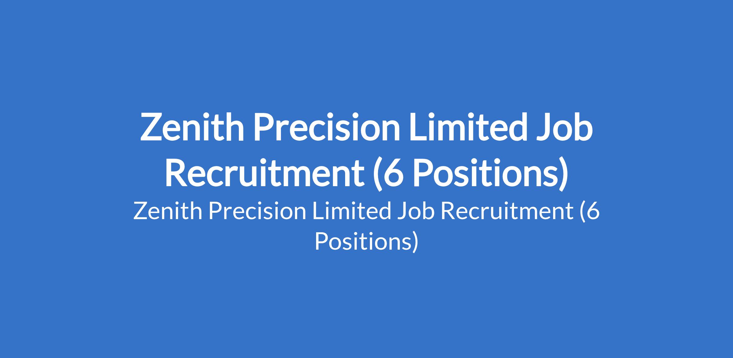 Zenith Precision Limited is currently recruiting suitably qualified candidates to fill the following positions in Abuja, Lagos, Kogi and Kwara States: Senior HR Officer, Field Technician, Account Officer, Technician (Coding Machine), Technical Lead, and Field Technician.