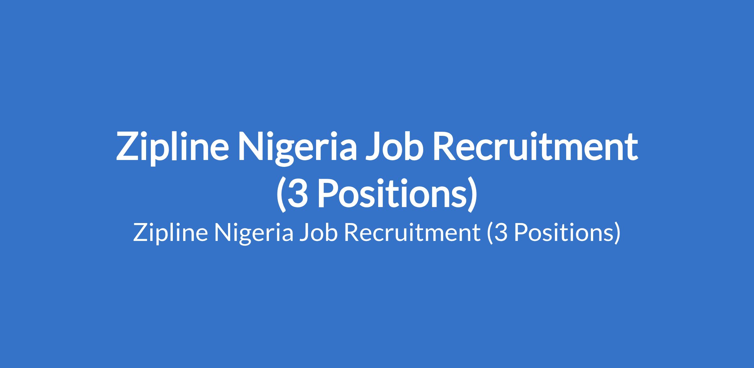 Zipline Nigeria Job Recruitment (3 Positions)