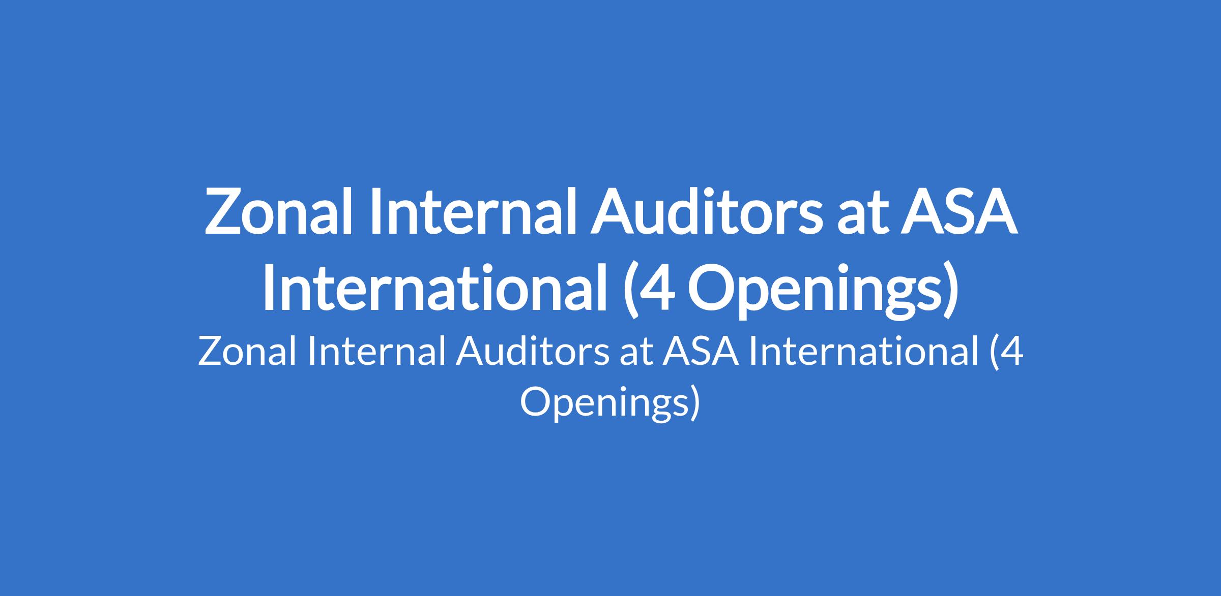 ASA Internation is recruiting to fill the position of: Zonal Internal Auditor. The position is located in Ikeja - Lagos, Enugu, Kogi, and Nasarawa States. Interested candidates should possess a Bachelors Degree in Accounting, Finance, or related discipline with 35 years experience in Internal Audit, preferably in the banking or financial services sector.