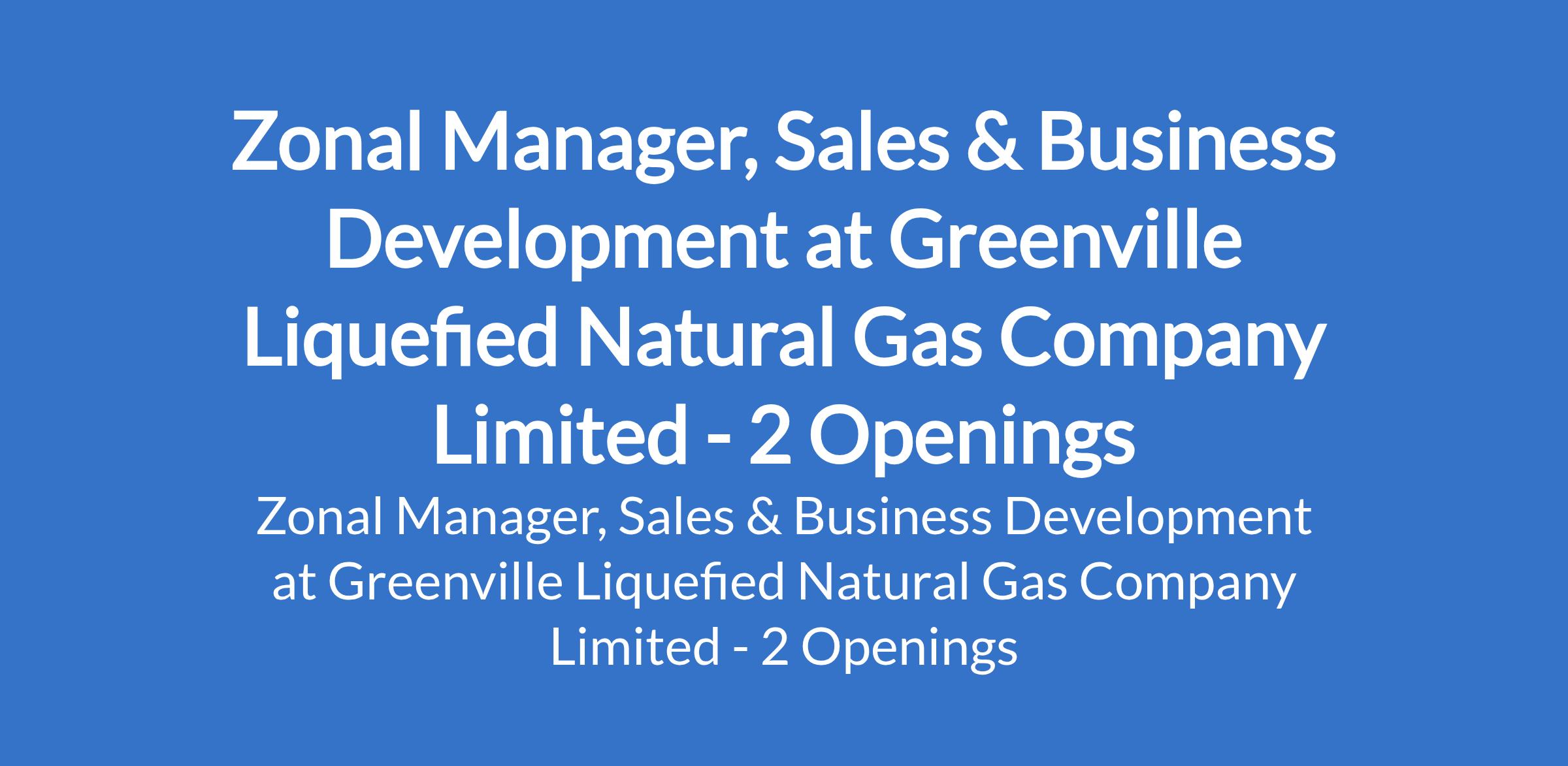 Greenville Liquefied Natural Gas Company Limited is recruiting to fill the position of: Zonal Manager, Sales & Business Development. The position is located in Kaduna and Kano States. Interested candidates should possess a minimum of Bachelor's Degree in Marketing, Business Administration, Chemical / Mechanical Engineering or related fields with at least 15 years' work experience in sales role in Oil and Gas industry including LNG, CNG, and LPG, with a deep understanding of the local market dynamics.